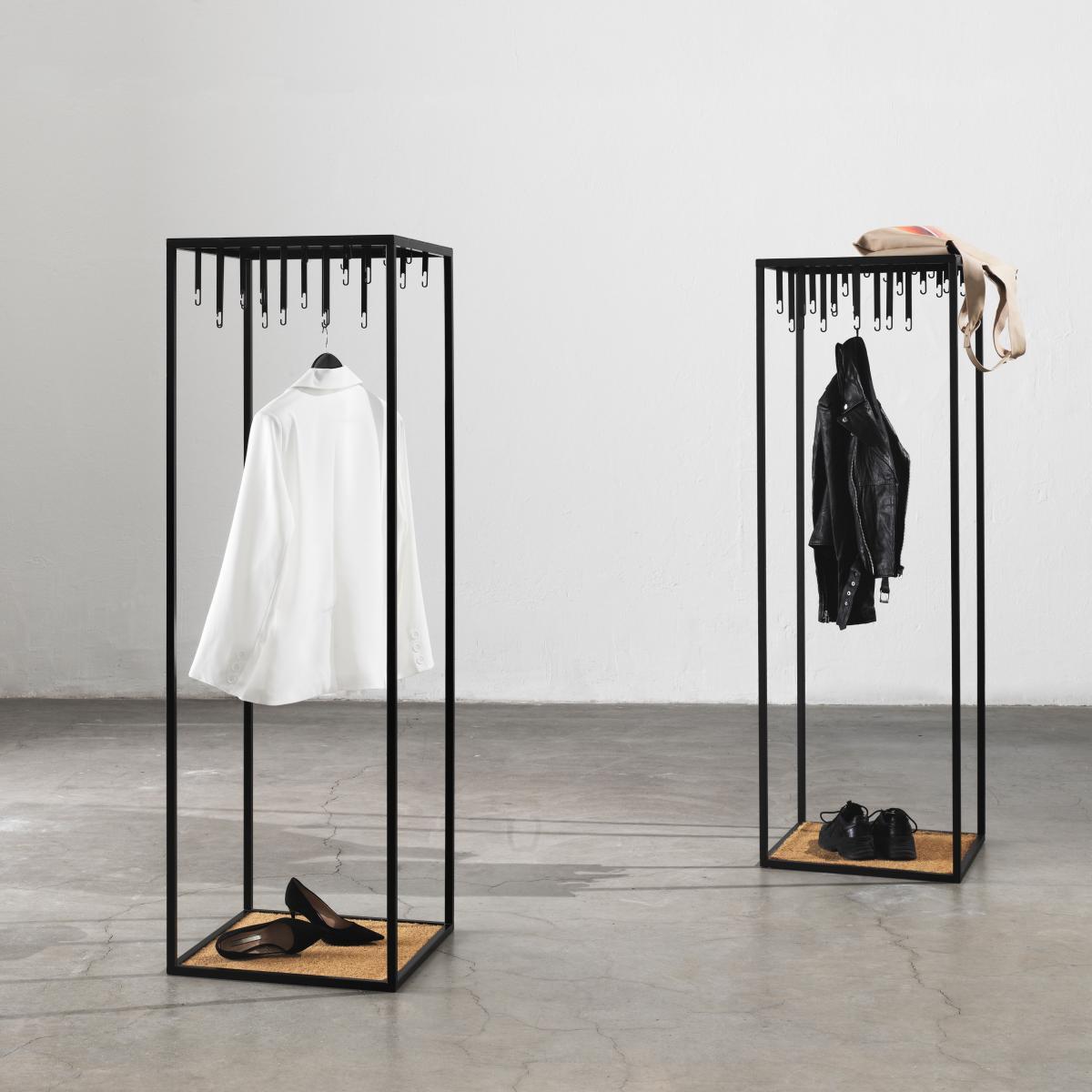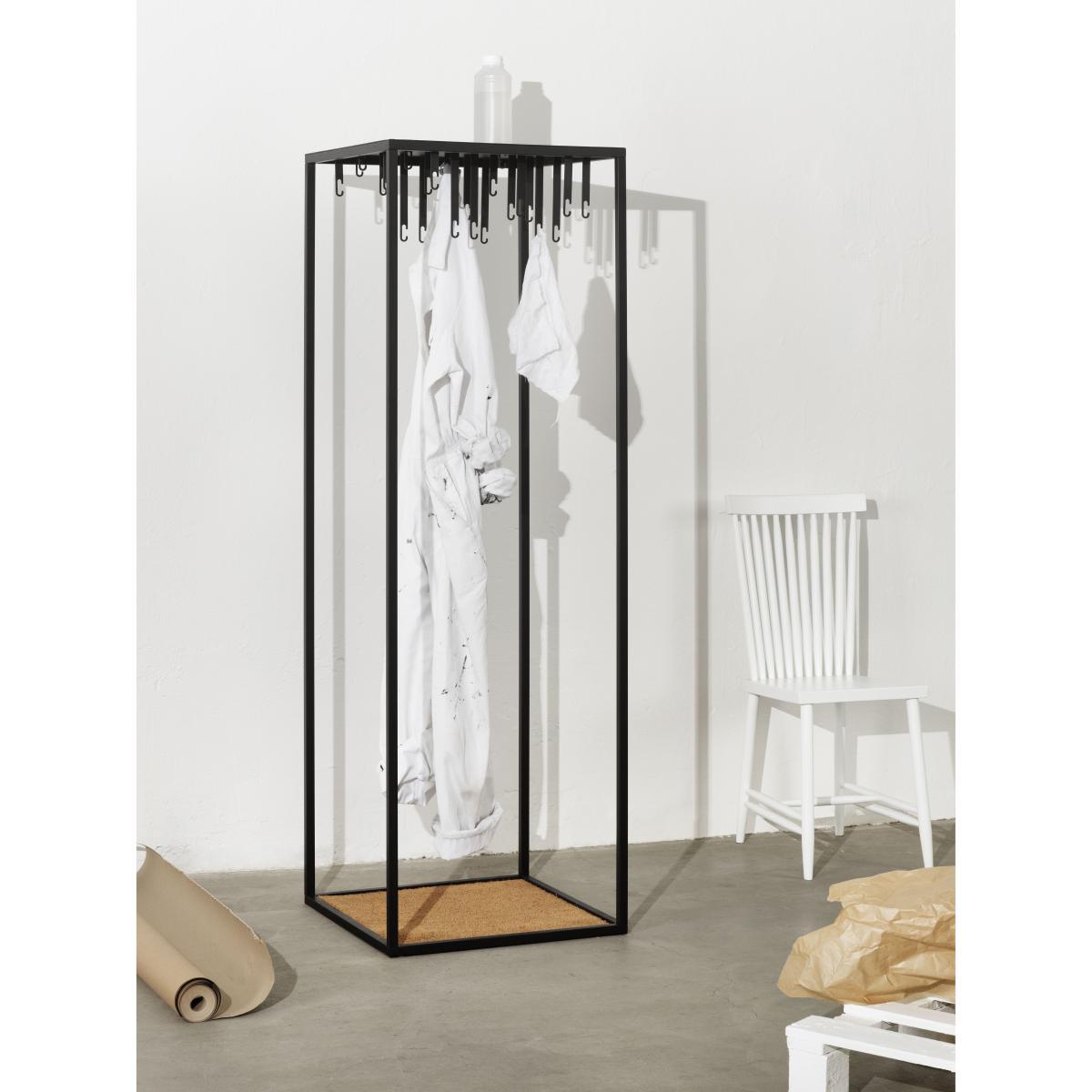 "This large square steel column is a contemporary, very graphic coat rack. Ethereal and refined, the thin structure is fitted with a multitude of hooks arranged at different heights. The Atelier coat rack means you can hang lots of clothes in a minimal space. This metal cage provides a refined setting for your coats, clothes, scarves or even your towels in the bathroom. This open wardrobe can be used in any space, hallway, bedroom or bathroom, with the added benefit of airing your clothes. You can put your bags or hats on top of the structure. The natural coconut fibre mat can hold your shoes. Absorbent thanks to its anti-dust short bristles, it is resistant to humidity. The aim of Swedish designer Alexander Lervik was to create a graphic setting to showcase your clothes rather than hide them away. He explains: "I wanted to hang a lot of clothes in a small space and then be able to immediately find a specific jacket or shirt. I also wanted to show off the clothes to best effect, give them an architectural envelope with a clear, direct graphic identity. "" The Atelier coat rack is a must for fashion addicts who want to showcase their favourite items. Outside the home, Atelier also has its place in offices, restaurant halls etc. ".