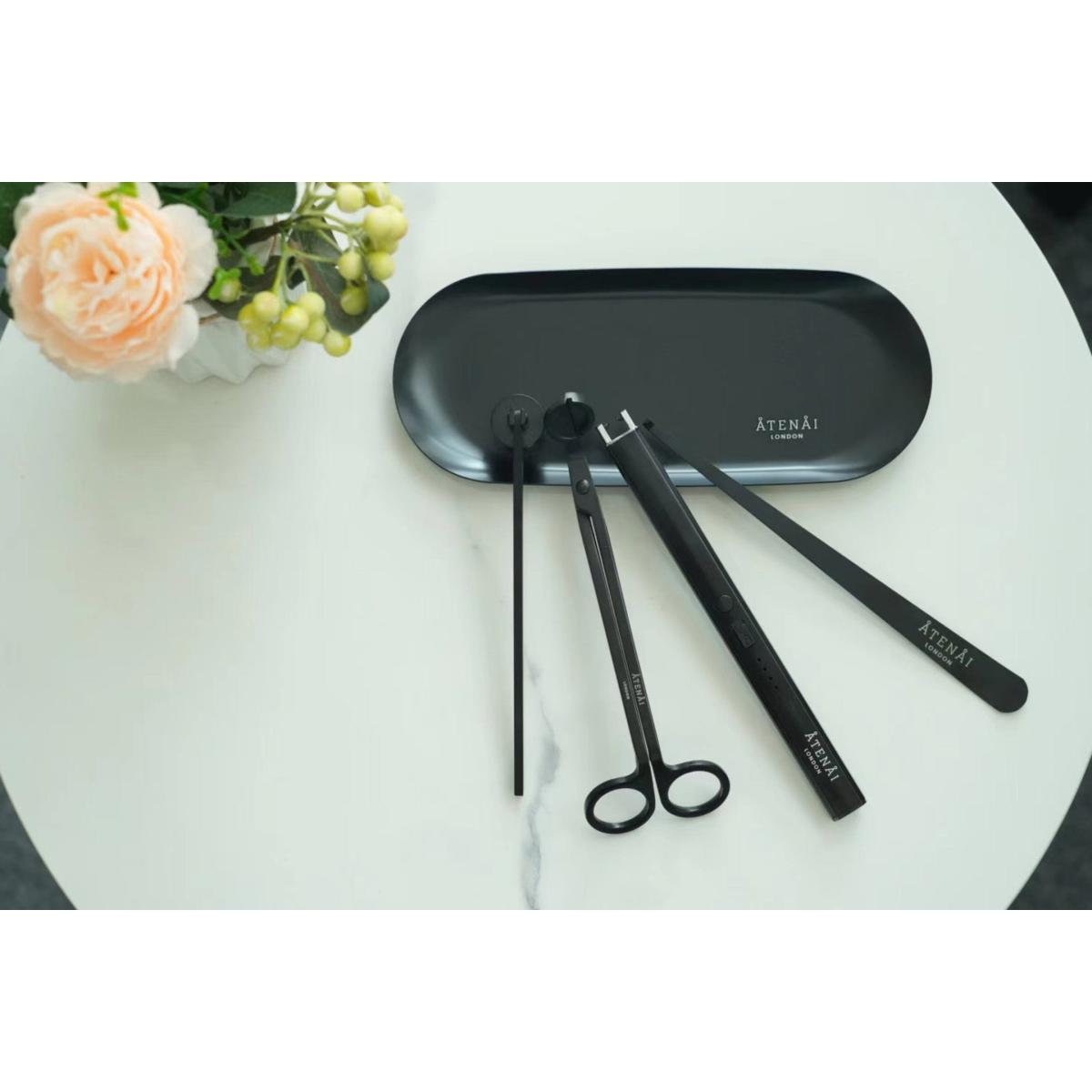 Candle Care Set of 5 Pieces Includes: Wick Trimmer, Wick Dipper, Candle Snuffer, Candle Tray A 5 Piece luxury candle care kit, the ultimate gift for the candle lover. Enjoy a safe and clean candle-burning experience. Care Kit Gift Set contains all the essential tools to ensure your favourite candles burn safely and effectively. All are specially designed to help you maximise your candle's burn time, scent throw, and safety features.
