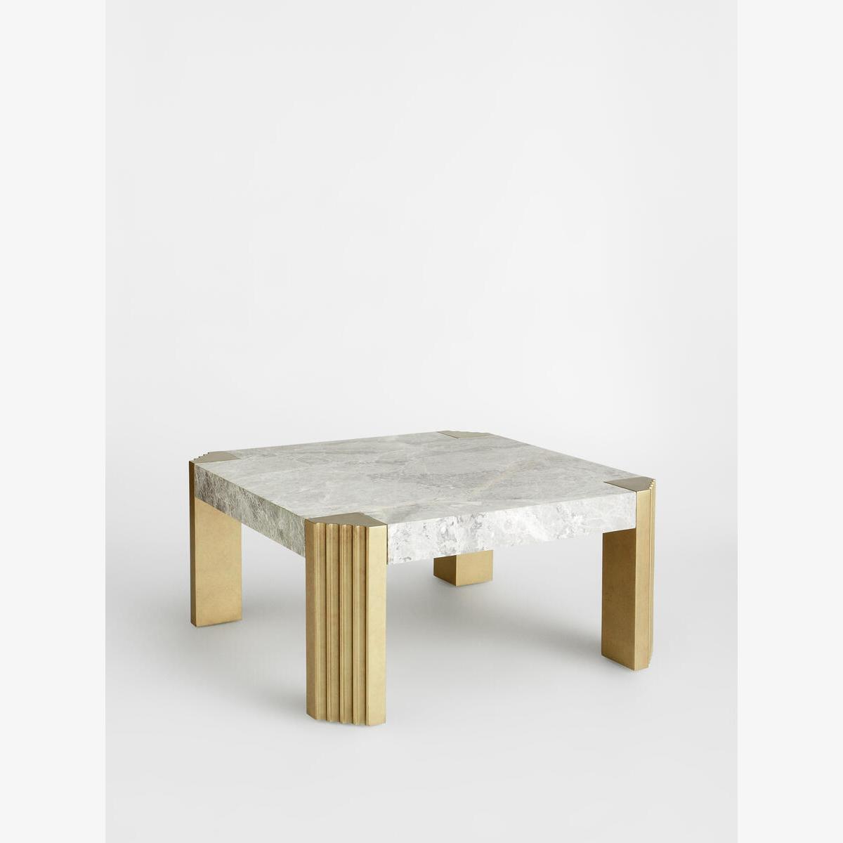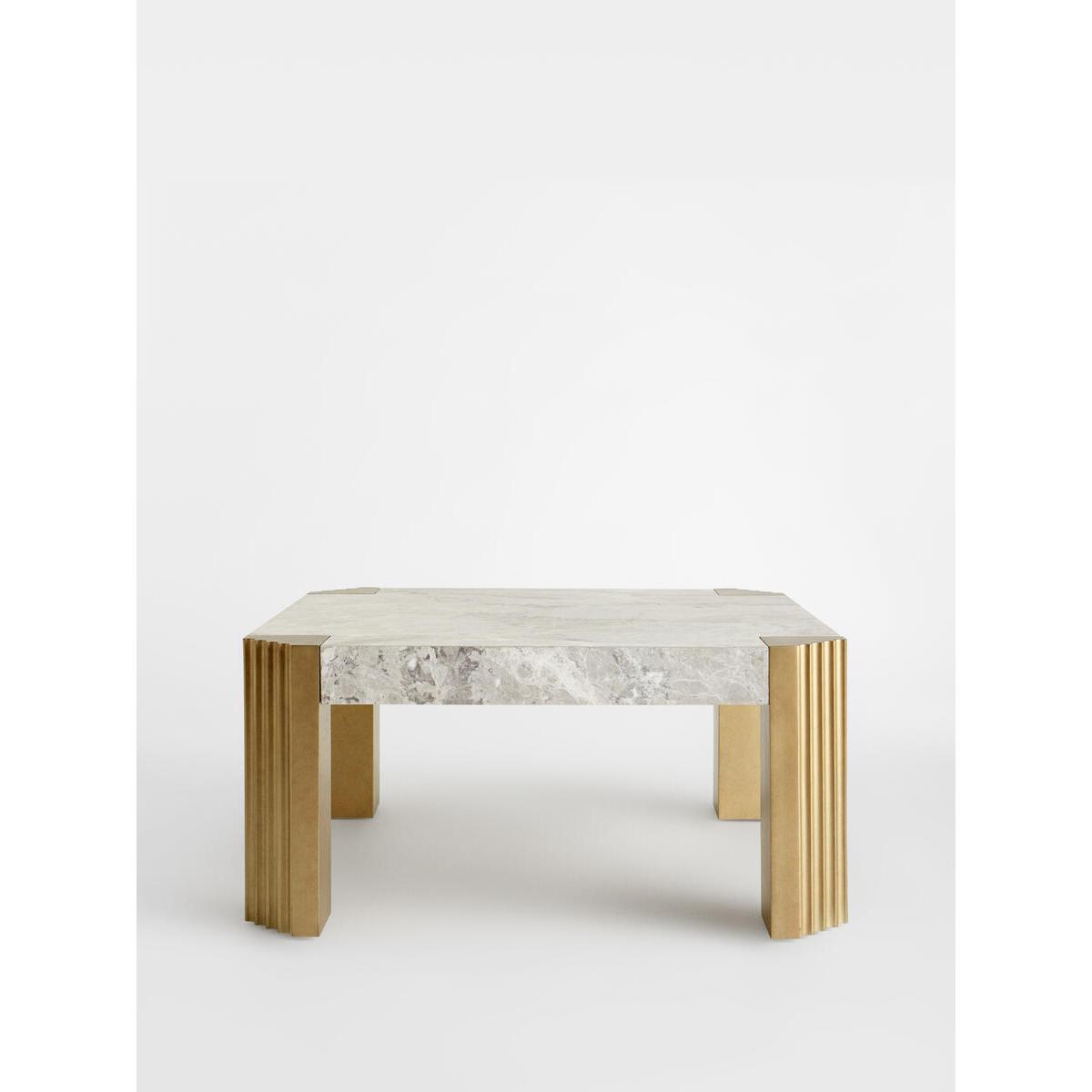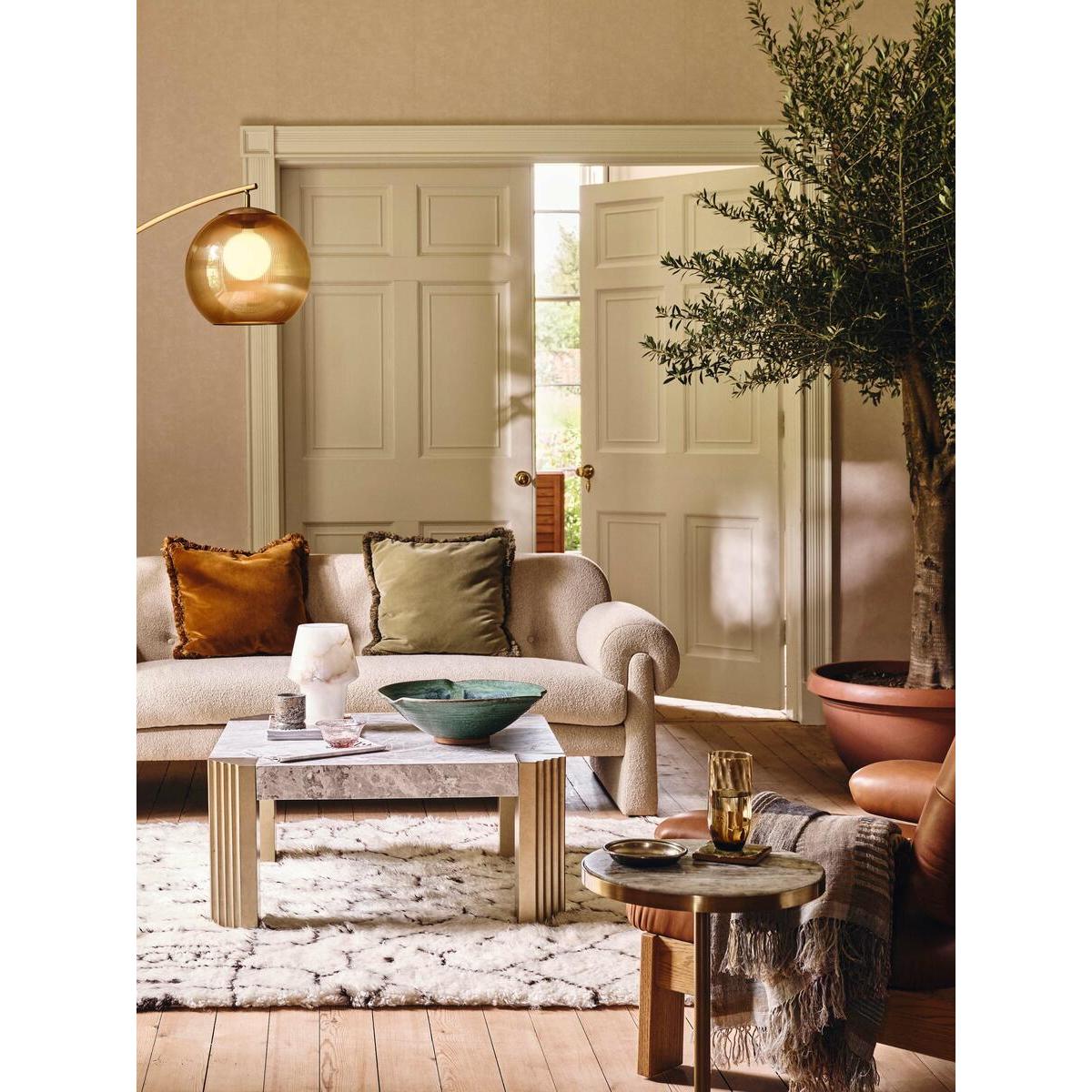 Complete your living area with the Athena coffee table, characterised by a chunky profile and Norway Grey marble top sourced from Spain, with white veining in the stone. Four antique brass-finish metal legs with a ridged texture instantly modernise the structural table and enhance the unique characteristics of the marble. Coffee table Chunky profile Antique brass-finish metal legs Norway Grey solid marble sourced from Spain White veining in the stone Each one is entirely unique due to variations in the marble Inspired by Soho House Rome
