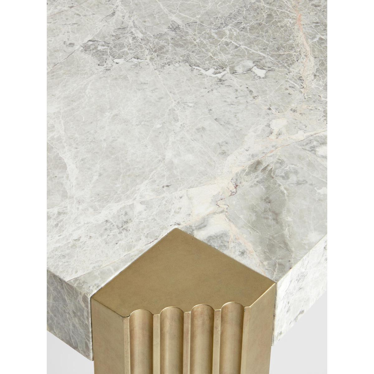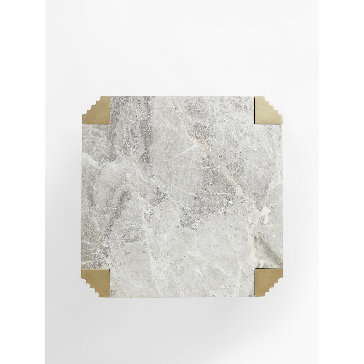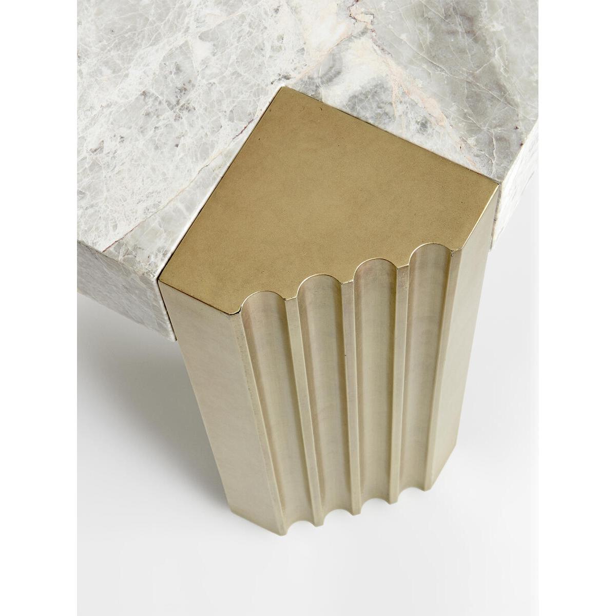 Complete your living area with the Athena coffee table, characterised by a chunky profile and Norway Grey marble top sourced from Spain, with white veining in the stone. Four antique brass-finish metal legs with a ridged texture instantly modernise the structural table and enhance the unique characteristics of the marble. Coffee table Chunky profile Antique brass-finish metal legs Norway Grey solid marble sourced from Spain White veining in the stone Each one is entirely unique due to variations in the marble Inspired by Soho House Rome