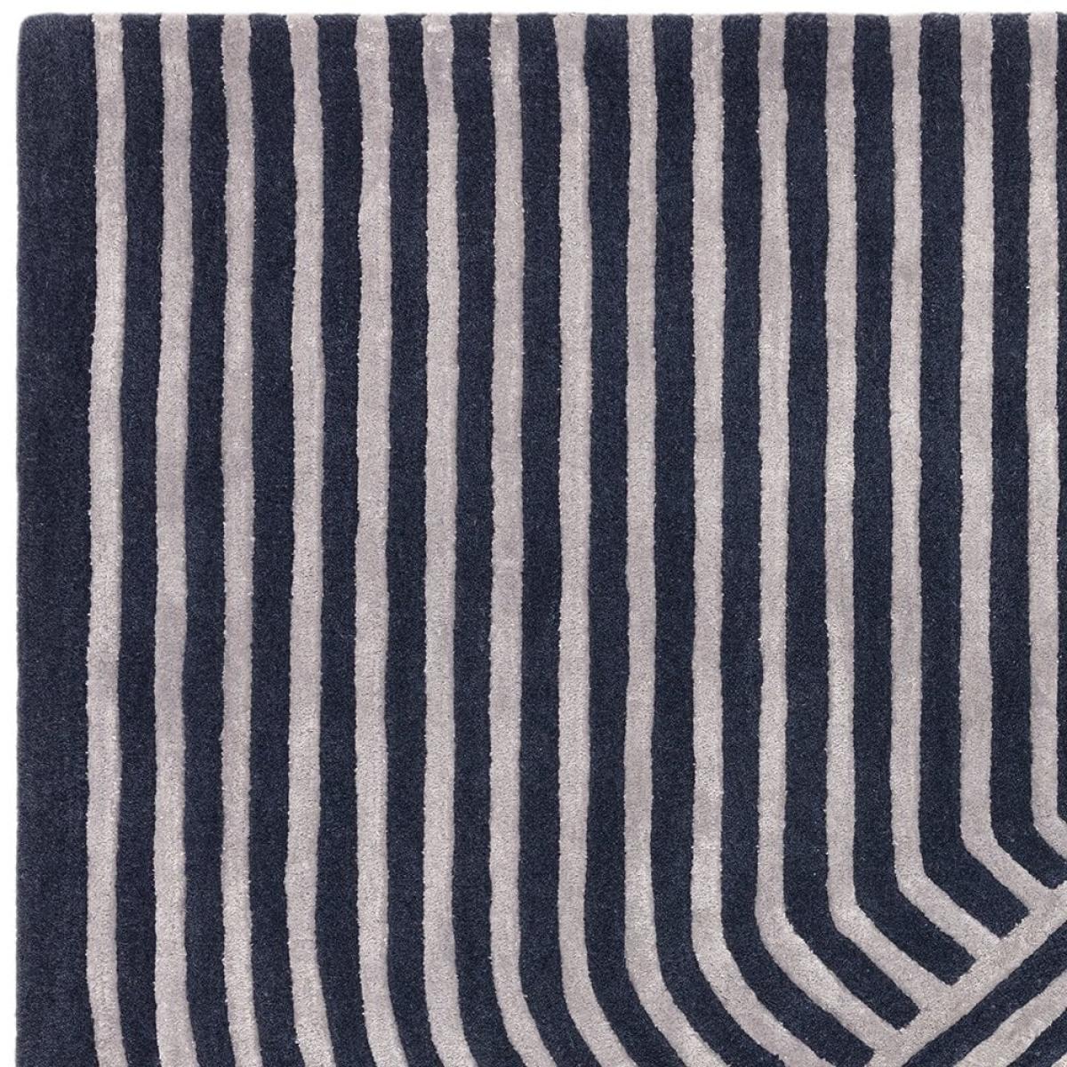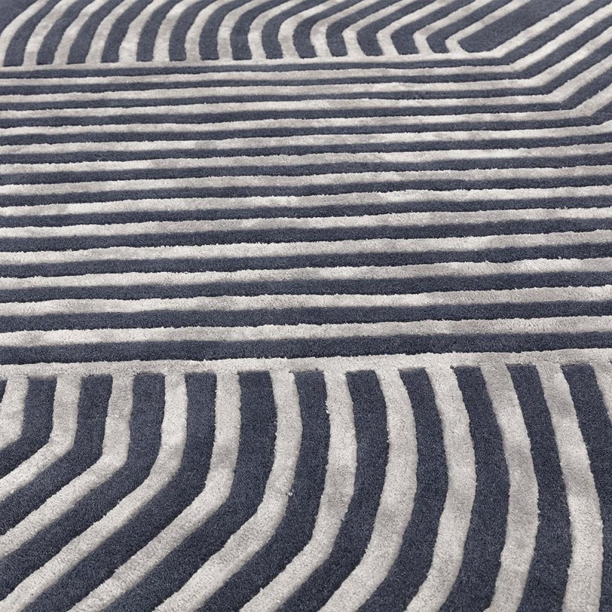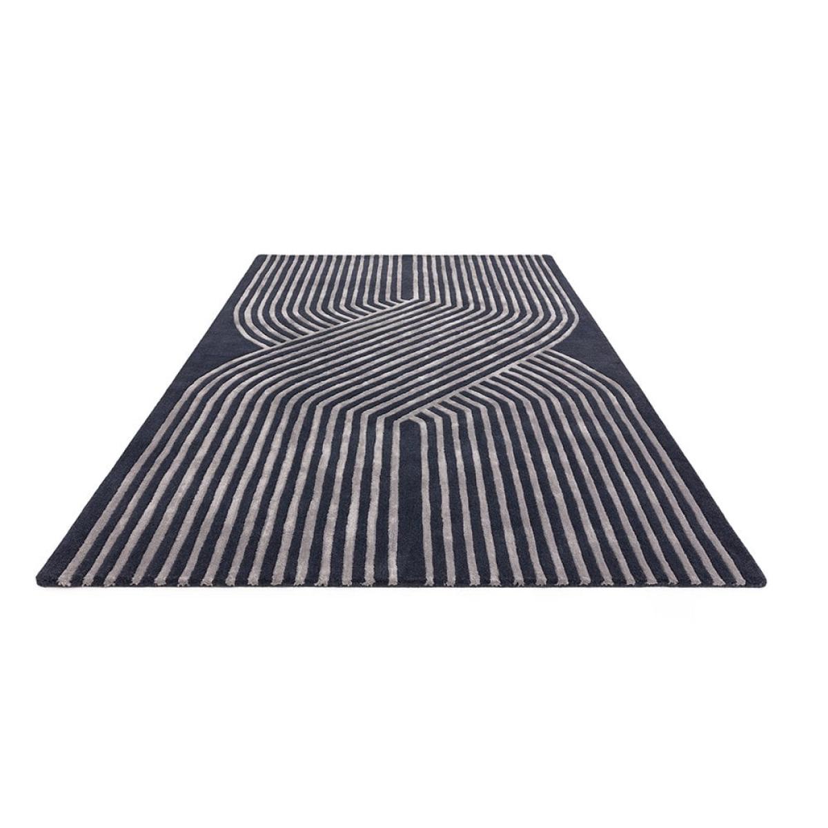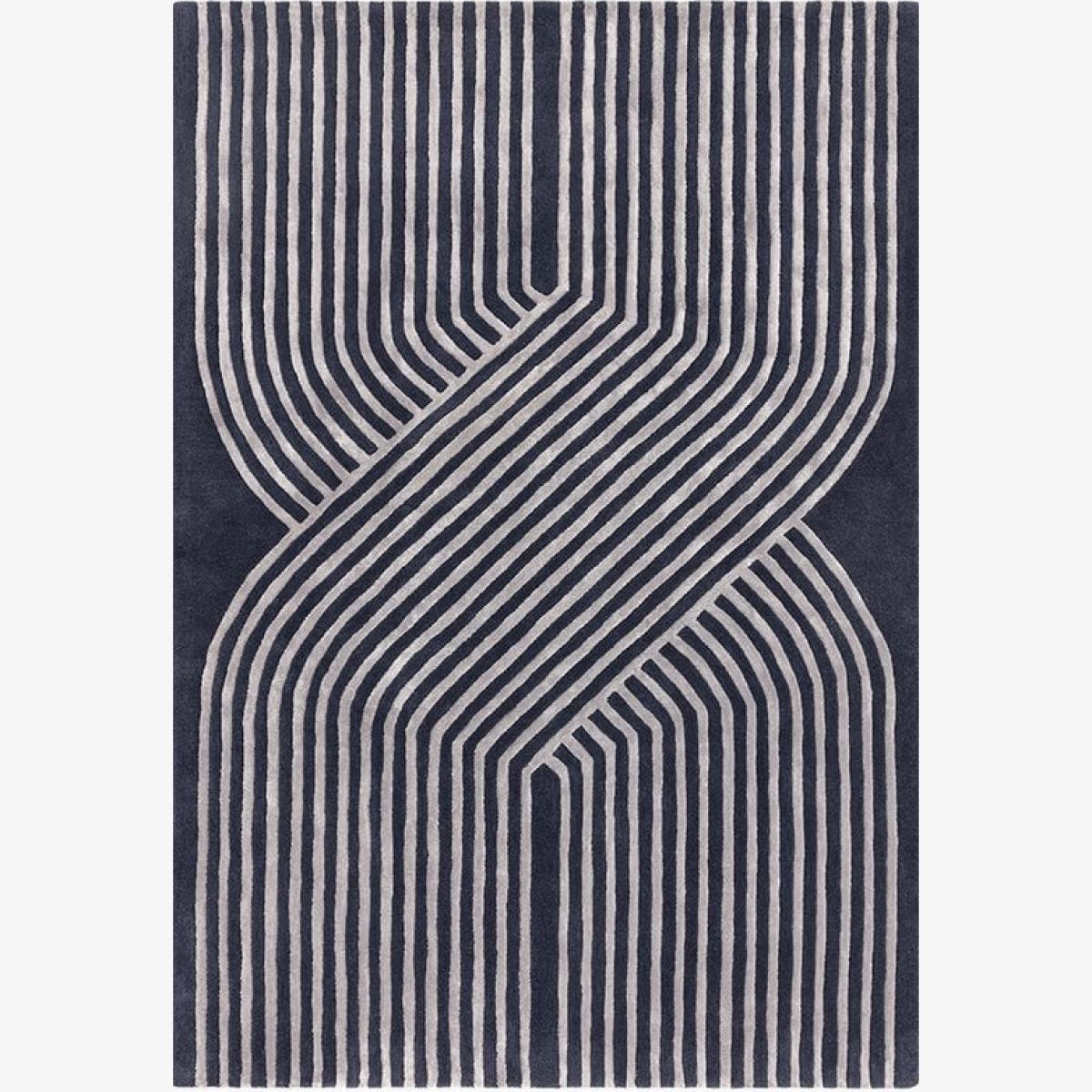 Introducing the Athena Hand Tufted Rug in Blue & Silver. This luxurious masterpiece is designed to add a touch of opulence to any room. The rug's textural cut not only enhances its contemporary design but also provides a unique hand-tufted look that exudes contemporary style. The black background serves as a timeless canvas, while the light copper hues add a subtle yet stylish touch of colour. Whether you're looking to create a focal point or tie together your existing decor, the Athena Hand Tufted Rug is the perfect choice.