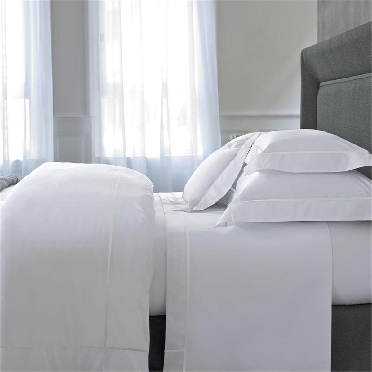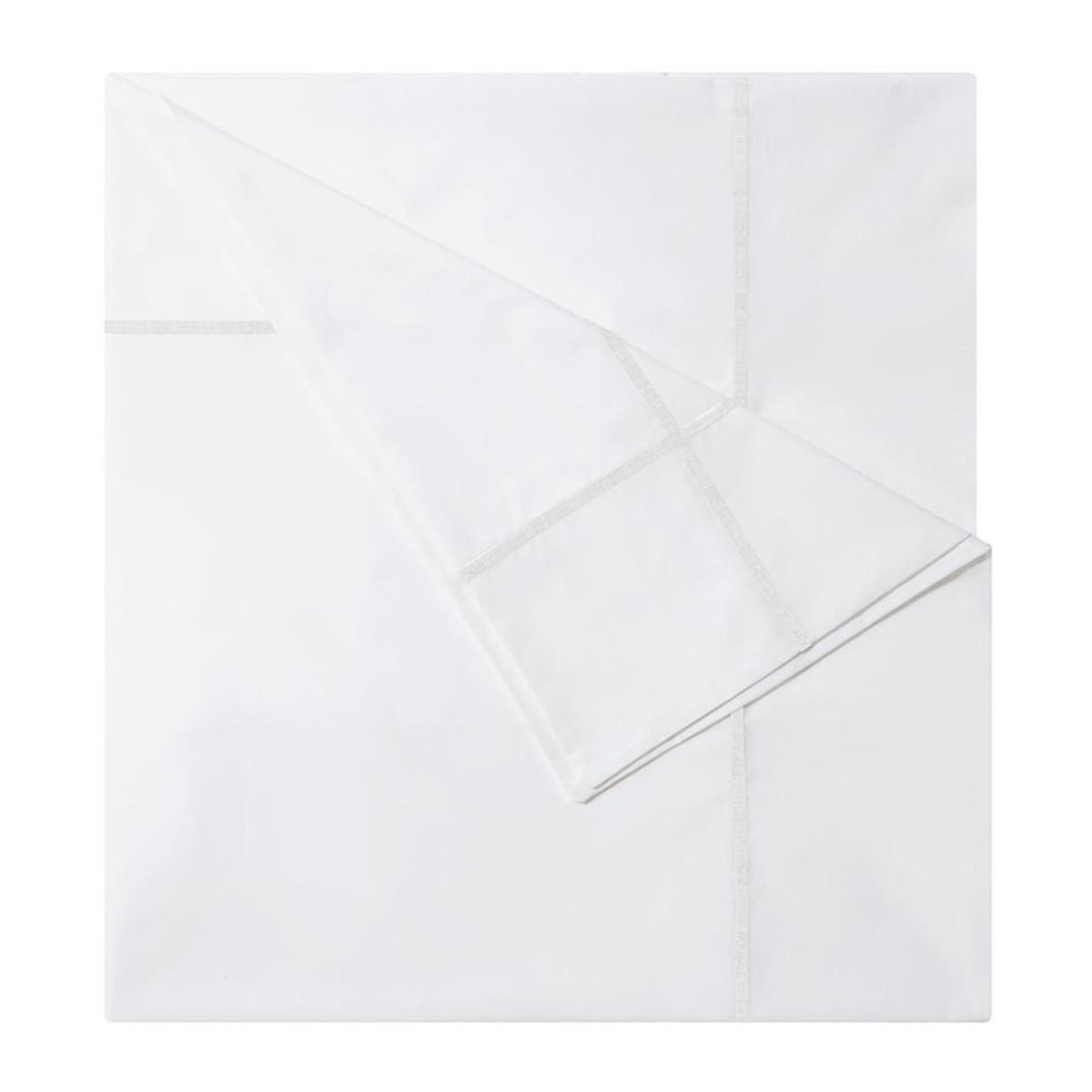 Infuse your sleeping space with the simple luxury of this Athena duvet cover from Yves Delorme. Made from exquisitely soft 100% cotton percale, this duvet cover is in fresh white with a high 500 thread count. Finished with a single stripe embroidered border design in matching white, complementing pillowcases are also available from Yves Delorme.