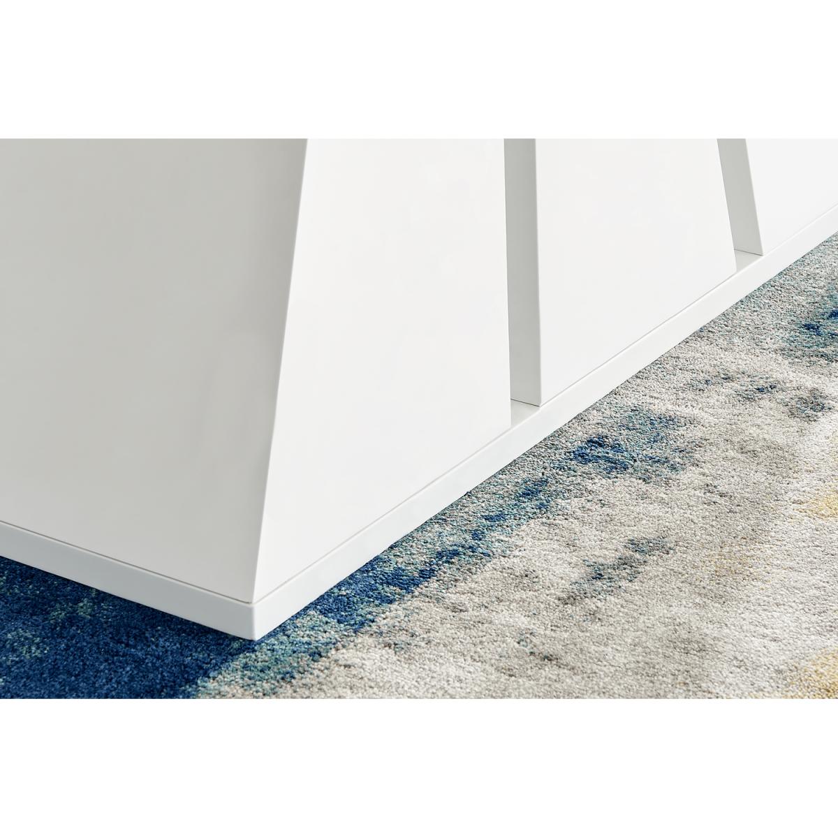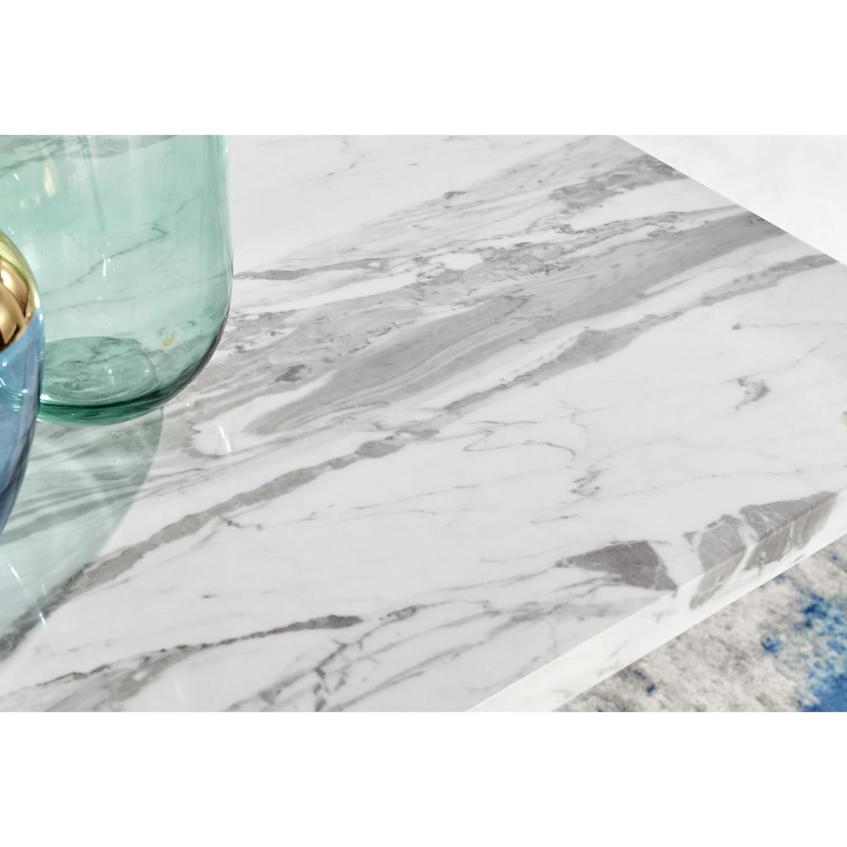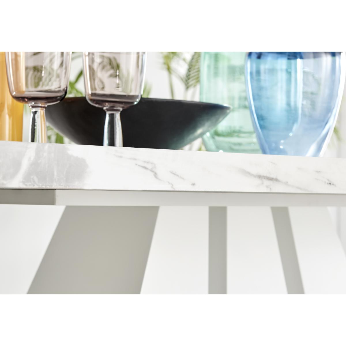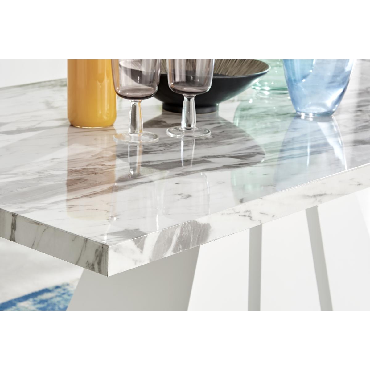 Featuring a stunning white matte pedestal base and a large rectangular top, the Athens modern dining table will be a stunning choice for your next dining set. The Athens is a 6 seat dining set so theres plenty of space to seat the whole family at dinner time. The three sections of the table base fan out for an art deco style pillar. This unique design elevates this from a dining table to a sculptural piece which will make a big impact in your dining room. Constructed from wood composite with a luxury matte finish which makes this table easy to keep clean. Its durable and will stay gorgeous for years to come. The table top here is a white marble effect which is smooth to touch gloss but has a gently textured appearance thanks to the natural looking marbling. The grey and white marble top compliments the solid white gloss base and makes the legs really stand out. Also available in other colours.