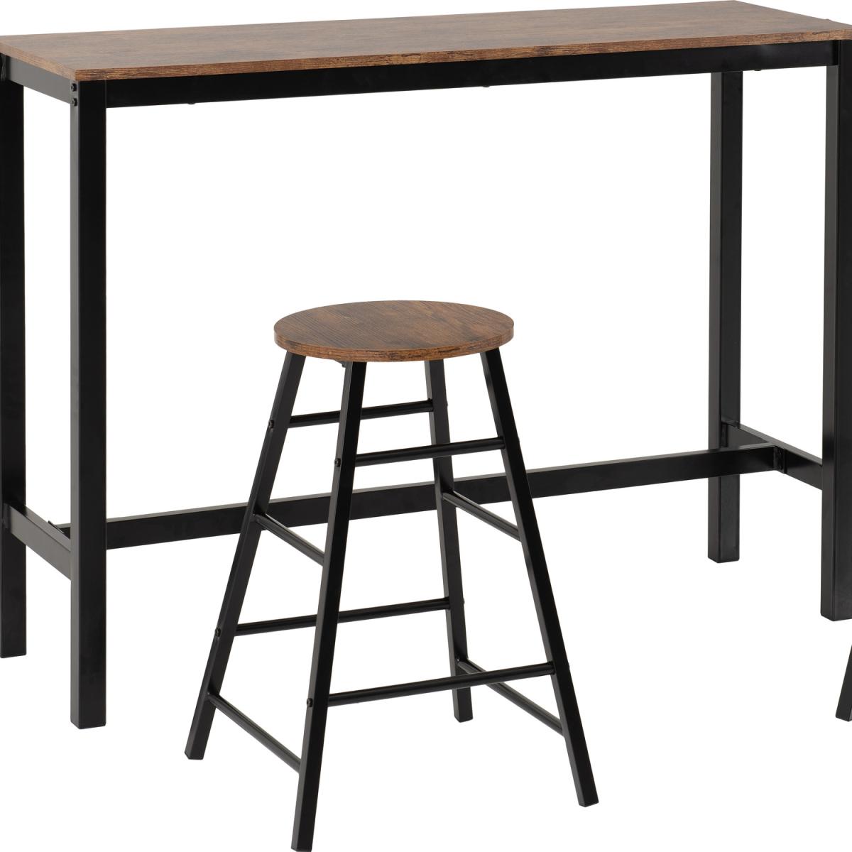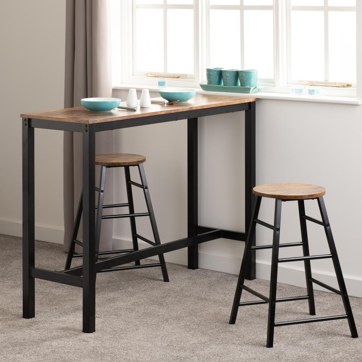 I’m a fan of the Athens bar set for its clean-lined silhouette and warm acacia-effect top against matte black legs - it feels both industrial and Scandi. It sits well in open-plan kitchens or compact breakfast nooks, especially with pale walls and simple pendant lighting. To style, add a couple of low-back bar stools in a contrasting finish, tuck in slim plant pots along the edge and keep accessories minimal (think a neat tray with coffee cups and a small vase) so the natural grain effect remains the focus.