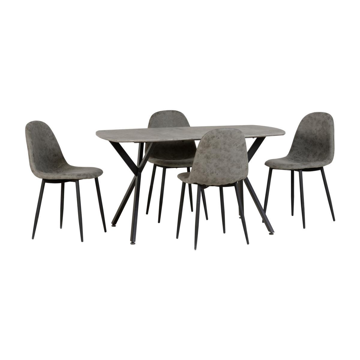 With its stunning industrial-chic design, the Athens dining set would make a cool, modern addition to your dining room. The table features a contemporary concrete-effect top with complementing black metal legs, whilst the matching faux leather upholstered chairs features foam padded, curved seats for added comfort.