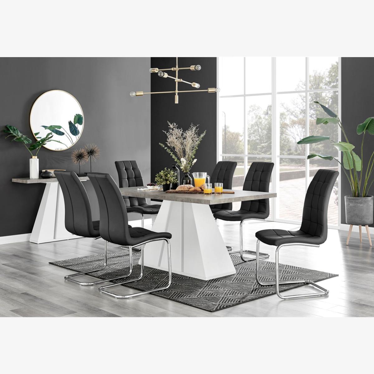 Athens Grey Concrete Kitchen Dining Table And 6 Murano Chairs - Black