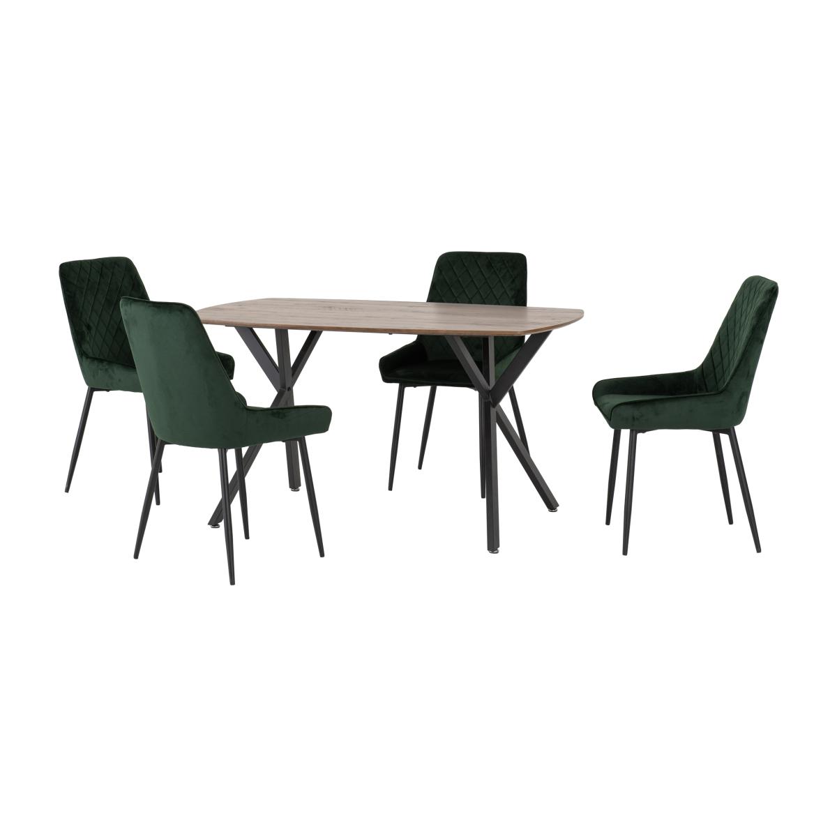 Athens Rectangular Oak Effect Dining Table with 4 Avery Green Dining Chairs Green