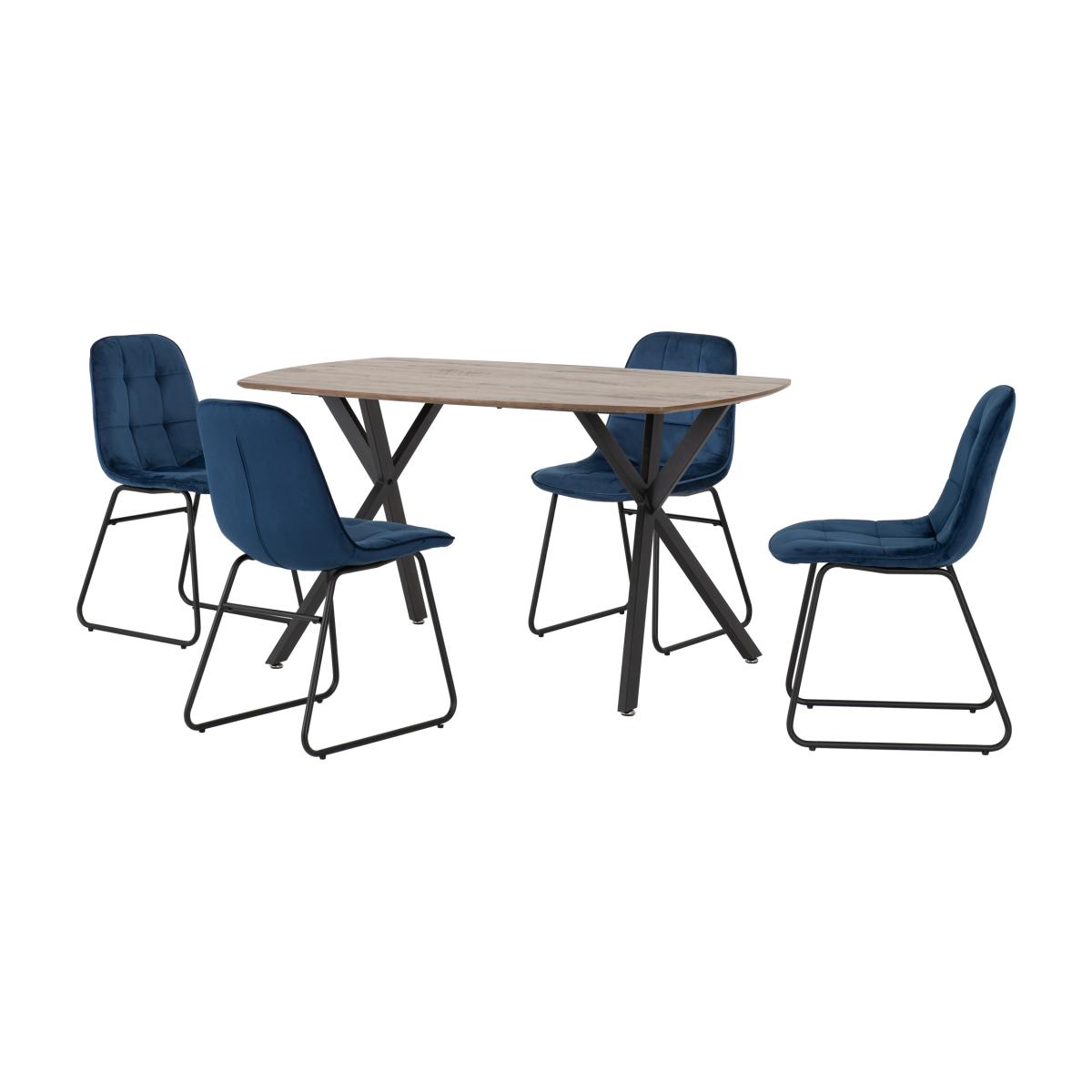 Athens Rectangular Oak Effect Dining Table with 4 Lukas Blue Dining Chairs Navy Blue