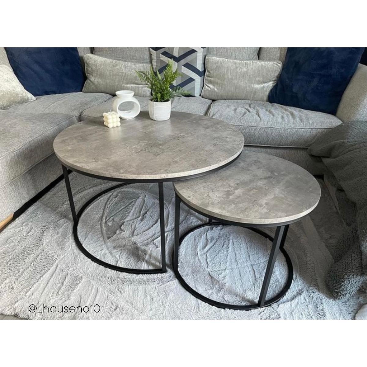 I love this set because of its contemporary take on a classic functional piece. The concrete effect lends an industrial yet versatile vibe, making it a great addition to both modern and loft-style interiors. It works particularly well layered over a soft rug or paired with textured cushions, creating an inviting vibe. Practical styling tips include using the smaller table as a surface for lamps or decorative accessories, while the larger works beautifully as a centrepiece or for casual drinks. Its neutral tones make it easy to incorporate into spaces with colour schemes ranging from monochrome to more vibrant palettes, ensuring it stays versatile and stylish.