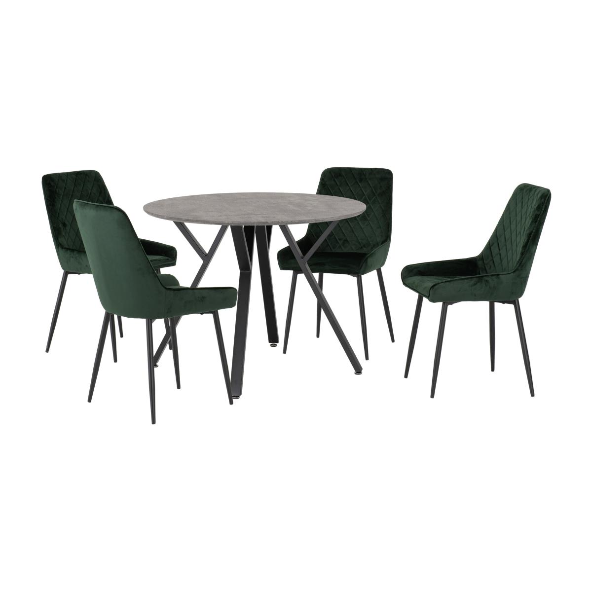 Athens Round Concrete Effect Dining Table with 4 Avery Green Dining Chairs Green