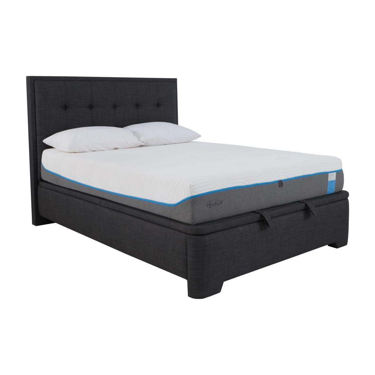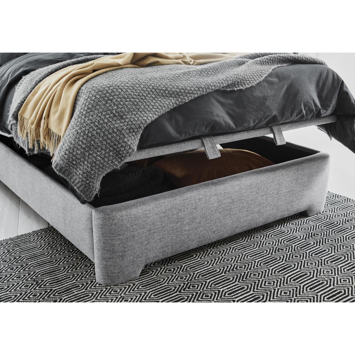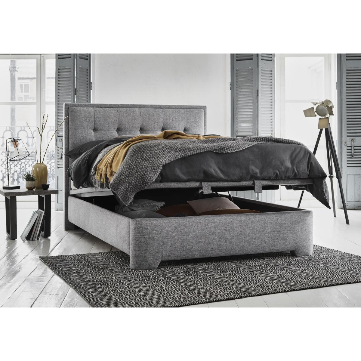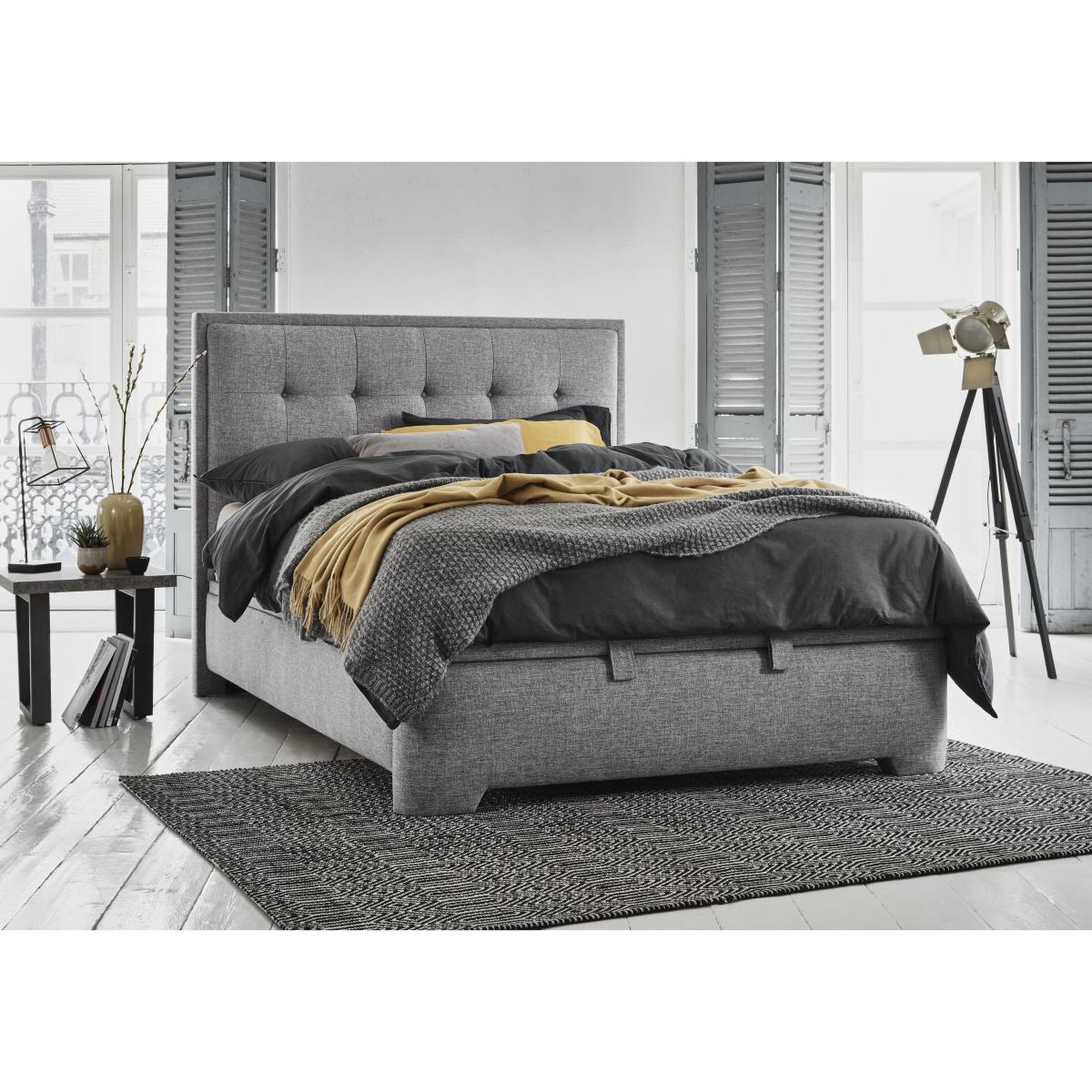 The Athos Ottoman Bedframe does it all. This stylish design comes with a supportive bed frame, spacious ottoman storage and a luxuriously cushioned headboard to rest your head against. Why you’ll love it. Stylish contemporary bed frame with spacious ottoman storage. Modern design with rounded edges and feet. Luxurious cushioned headboard with elegant button detail. Hydraulic-assisted lift system for easy storage access. Platform style, ventilated base that keeps you cool and comfortable. Choose from chic grey or on-trend slate. Available in double, king and super king sizes. Made and hand-finished with care. What you need to know. Upholstered in a soft polyester fabric. Mattress not included. Clean weekly using a soft brush or vacuum with the curtain attachment. Annual professional cleaning is recommended. Some fabrics can show wear on areas of more use or in direct sunlight.