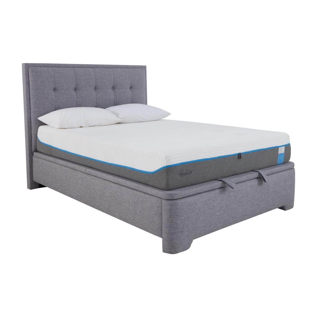 The Athos Ottoman Bedframe does it all. This stylish design comes with a supportive bed frame, spacious ottoman storage and a luxuriously cushioned headboard to rest your head against. Why you’ll love it. Stylish contemporary bed frame with spacious ottoman storage. Modern design with rounded edges and feet. Luxurious cushioned headboard with elegant button detail. Hydraulic-assisted lift system for easy storage access. Platform style, ventilated base that keeps you cool and comfortable. Choose from chic grey or on-trend slate. Available in double, king and super king sizes. Made and hand-finished with care. What you need to know. Upholstered in a soft polyester fabric. Mattress not included. Clean weekly using a soft brush or vacuum with the curtain attachment. Annual professional cleaning is recommended. Some fabrics can show wear on areas of more use or in direct sunlight.