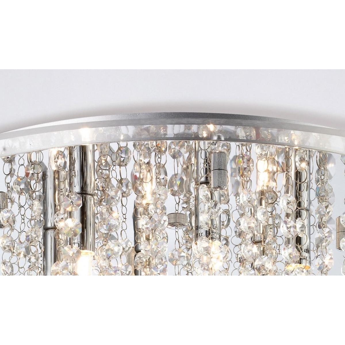 I love this flush ceiling fitting for its modern elegance and statement sparkle. Its polished chrome finish combined with the acrylic trim and hanging crystal droplets makes it an ideal choice for contemporary interiors that need a touch of glamour. It works particularly well in bedrooms, hallways, or living spaces with neutral tones, where it can act as a focal point without overwhelming the room. For practical styling tips, pair it with minimalist or metallic accents to emphasize its sleek design, and consider placing it over a neutral-coloured ceiling or using dimmable bulbs to create versatile lighting moods. This light adds a luxurious touch while maintaining a clean and polished look perfect for both modern and transitional schemes.