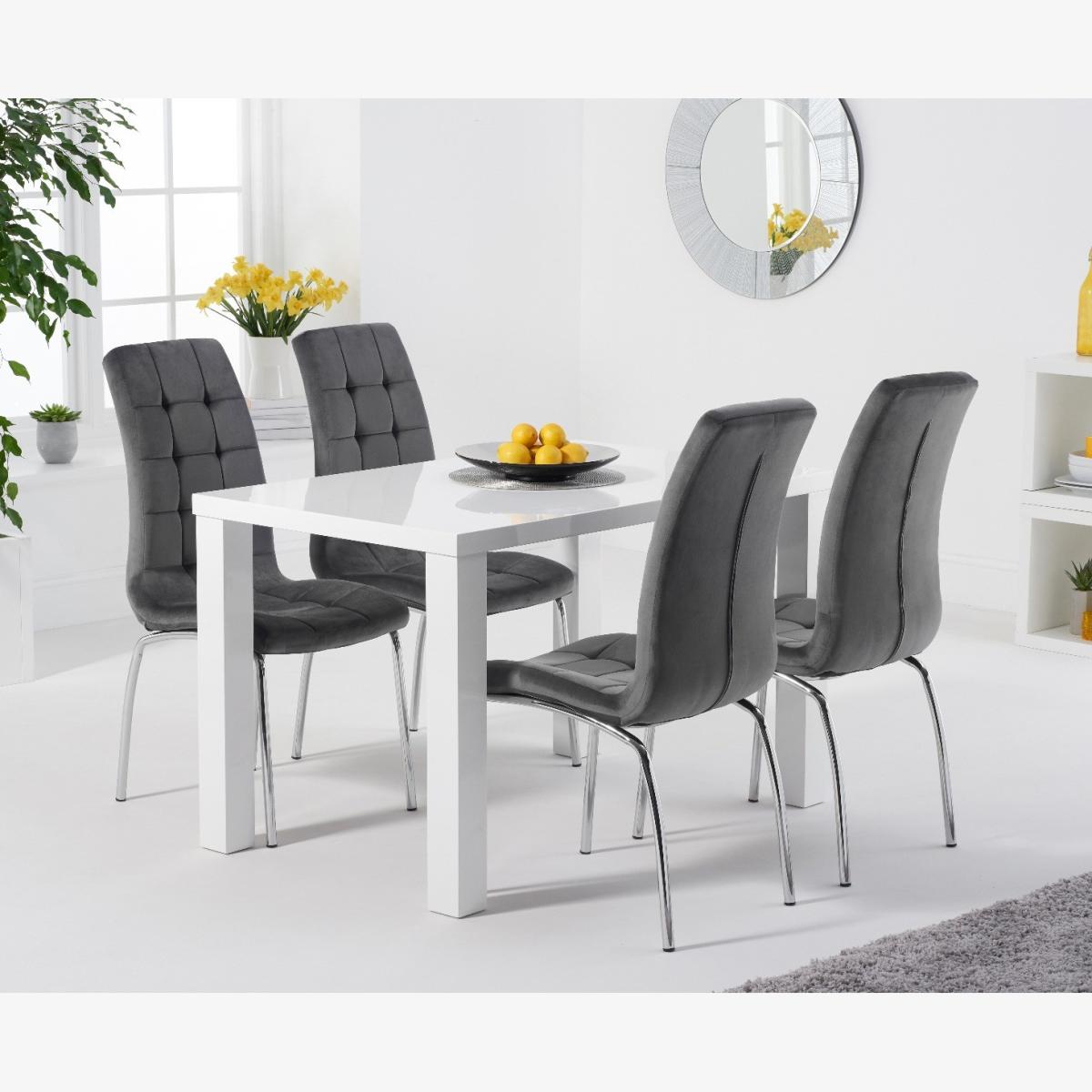 Atlanta 120cm White High Gloss Table With 6 Blue Calgary Velvet Chairs