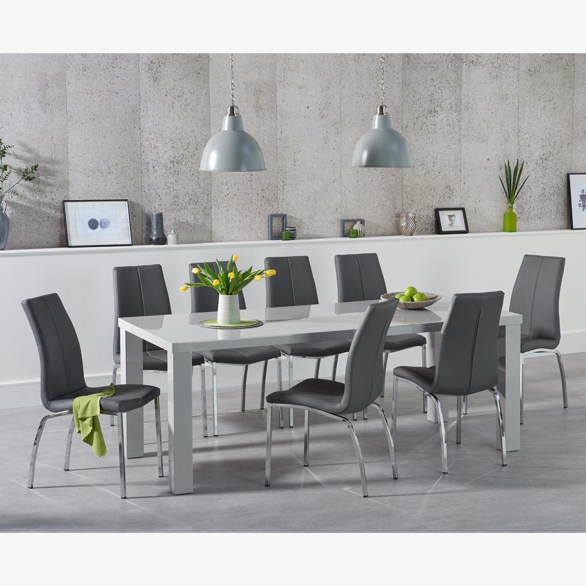 Atlanta 200cm Light Grey High Gloss Dining Table With 6 Grey Cavello Chairs