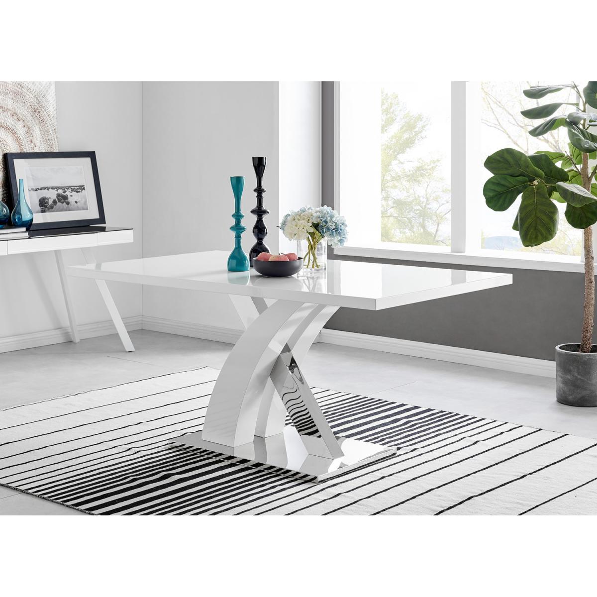 Atlanta Chrome Metal And White High Gloss 6 Seater Dining Table - White