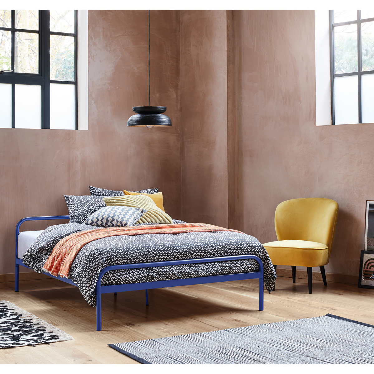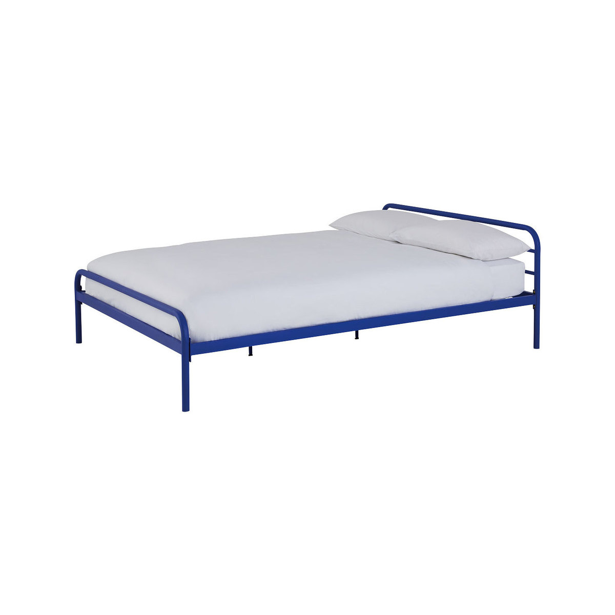Low, curved head and footboards combined with vibrant colour give the Atlanta cobalt blue metal kingsize bed frame a striking silhouette. The contemporary bed frame has a powder-coated finish and metal slats that provide a strong, stable base for a mattress. A standard UK 150cm kingsize mattress fits the Atlanta bed, which is available in 2 sizes and a choice of colours, shop our mattress collection to find one that suits the way you sleep.