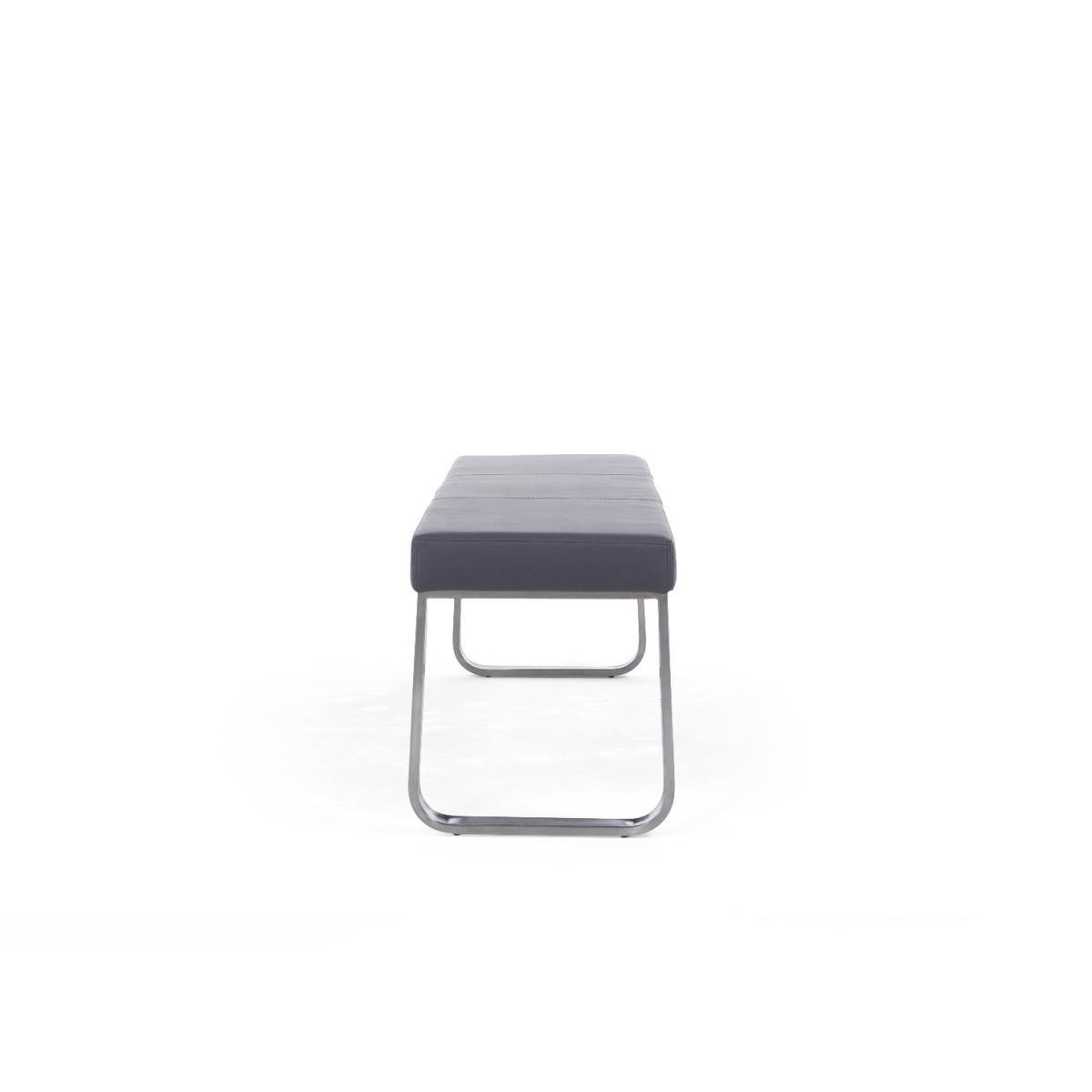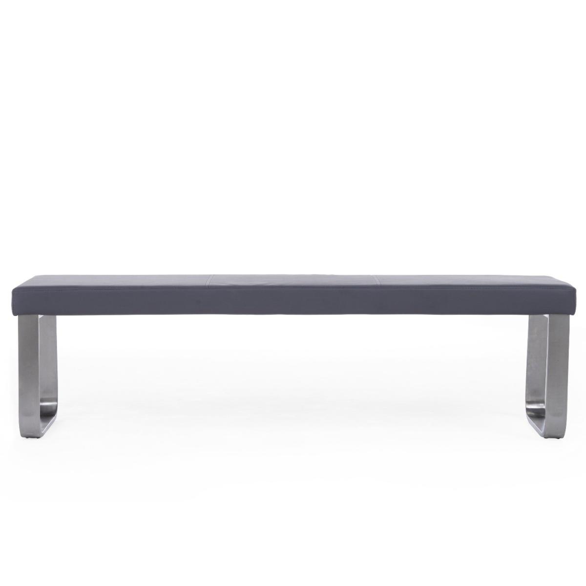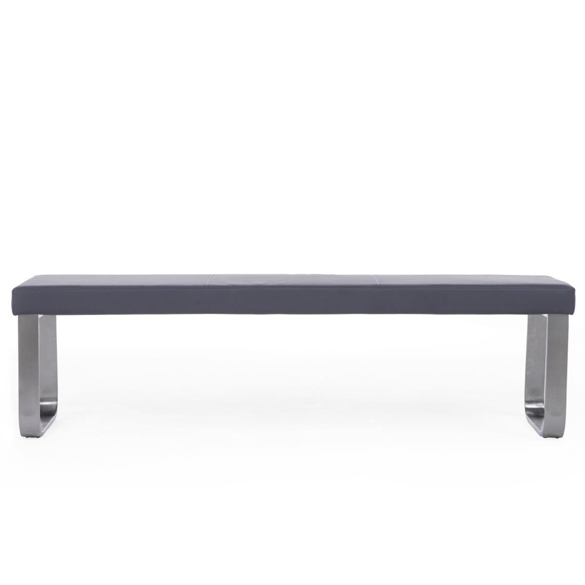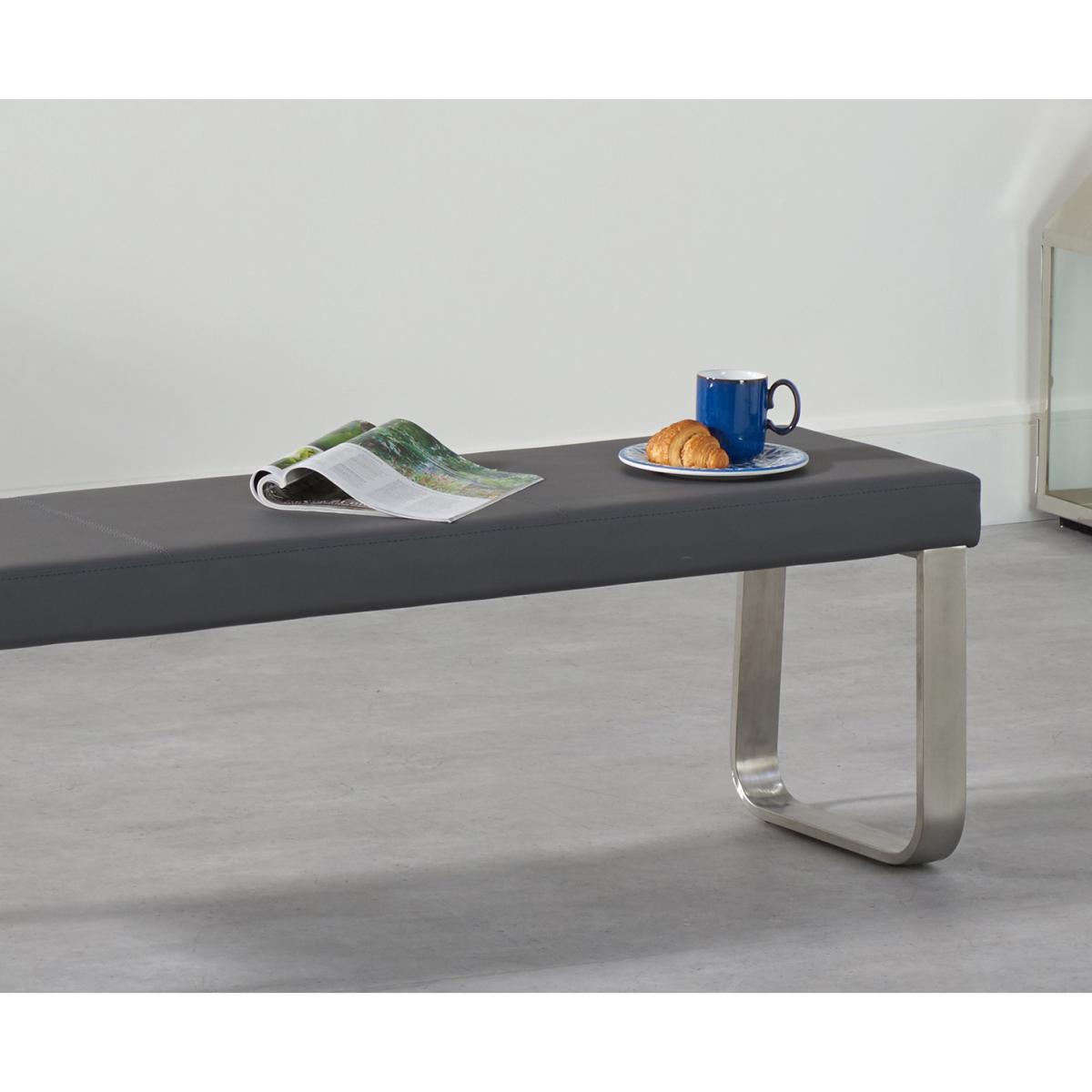 A stylish and chic alternative (or addition) to chairs, the Atlanta Large Grey Bench can seat up to 4 people comfortably. It features brushed stainless steel legs that form together in a sled style; these support a foam-padded seat that has been expertly upholstered in soft and pliable faux leather in a flattering shade of grey. An ideal bench for modern and contemporary interiors.
