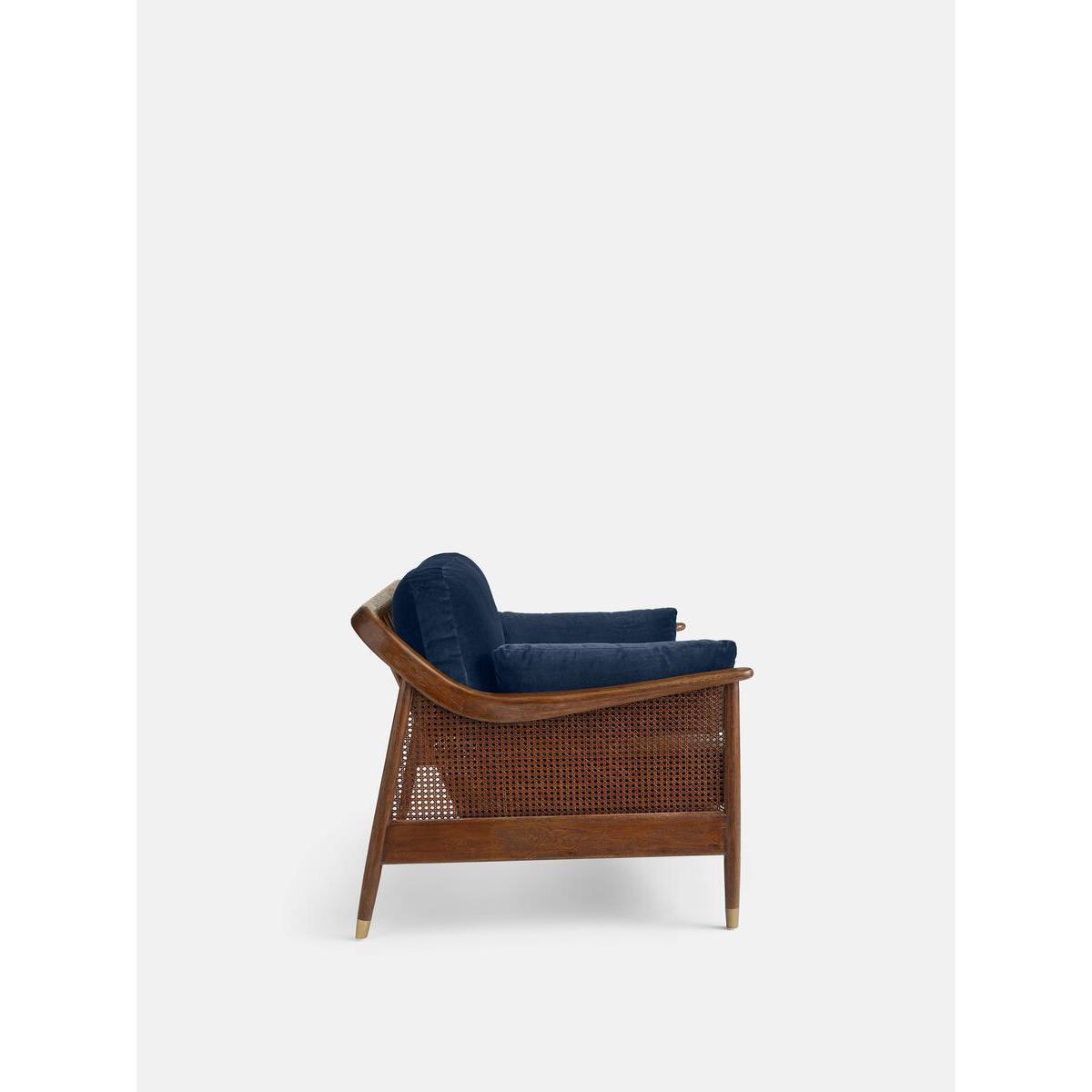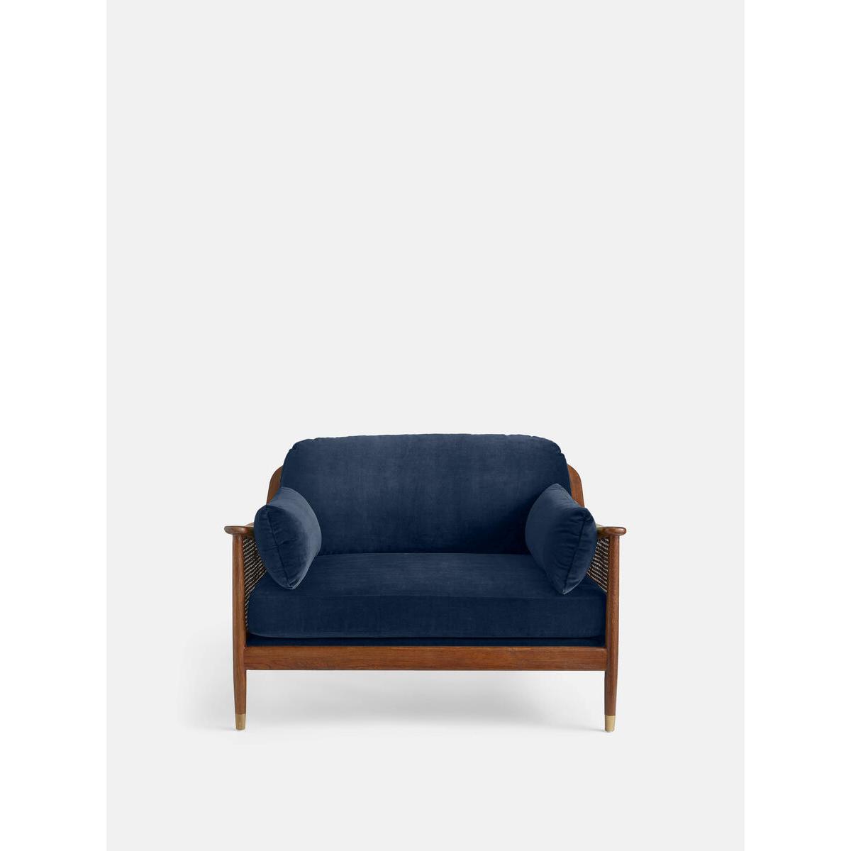 The Atlanta loveseat has been upholstered in velvet for a rich depth of colour and texture. A solid oak frame and natural rattan panelling play with contrasting textures, while a spindle back, capped feet and antique brass detail echo the styles seen throughout Shoreditch House. Solid oak loveseat Upholstered in velvet Natural rattan panelling Antique brass detailing Capped feet Pair with our Atlanta sofas Available in other fabrics Inspired by Shoreditch House
