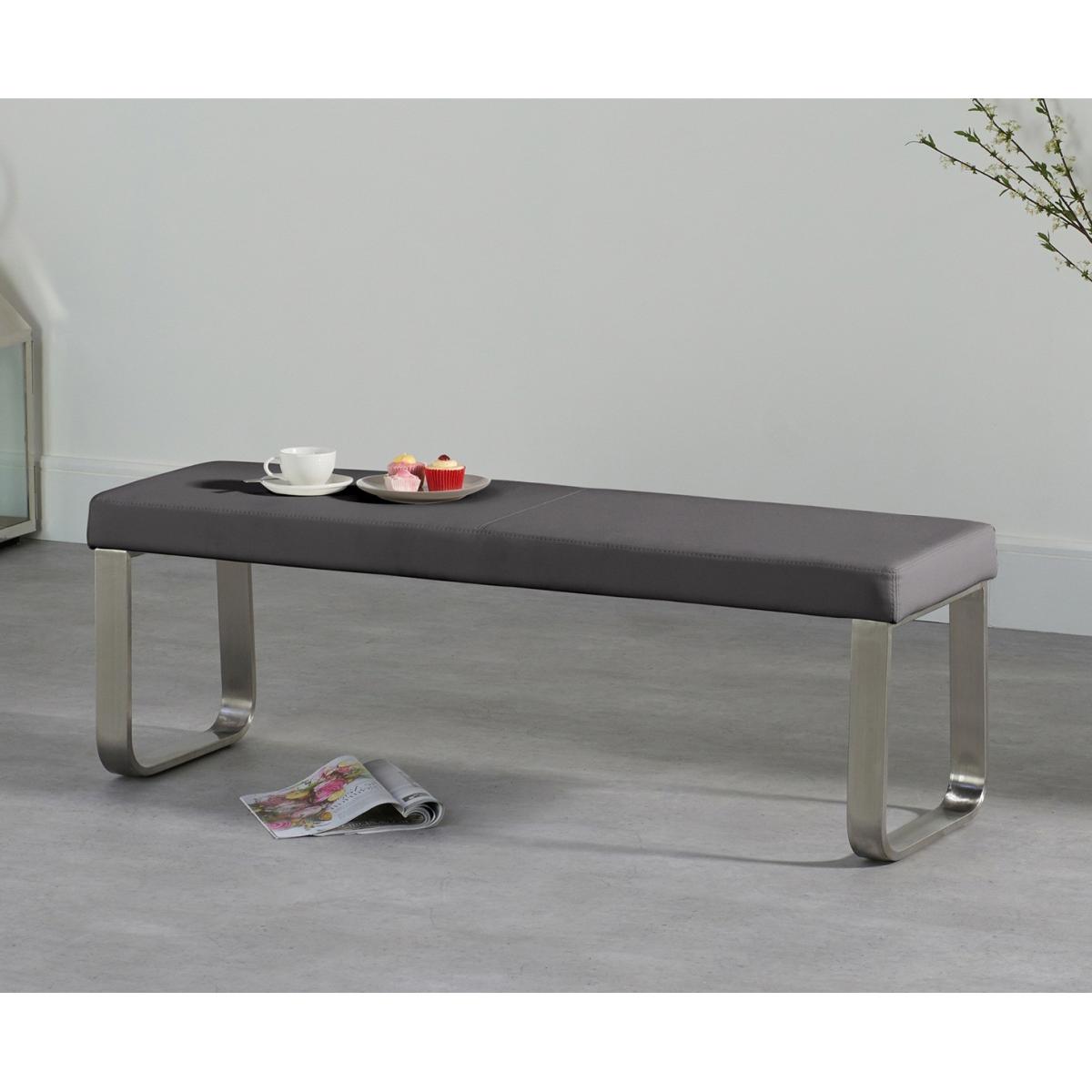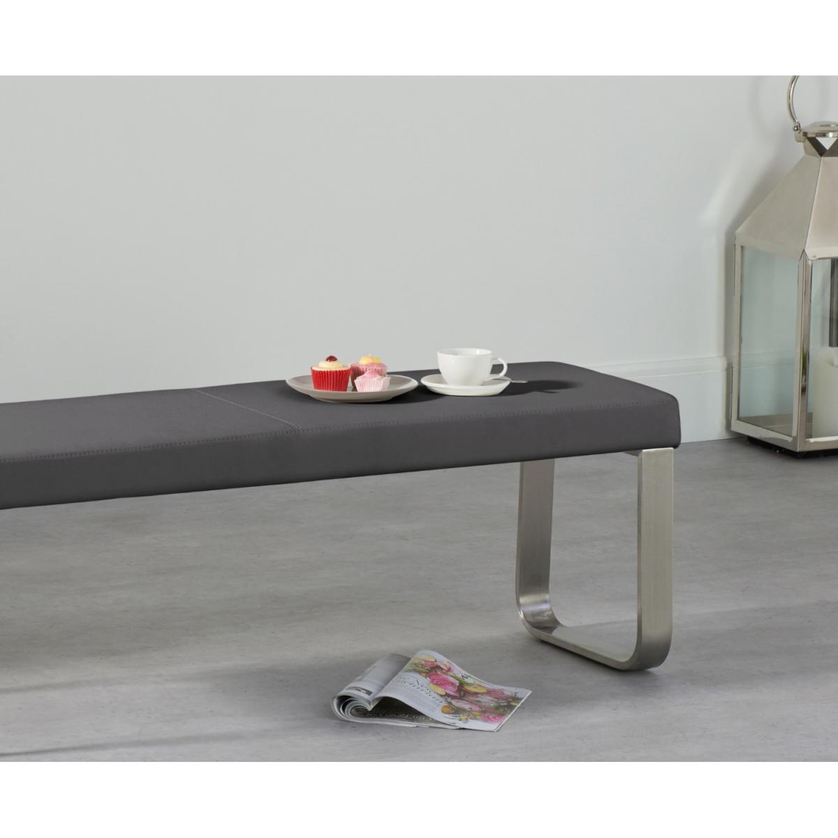 A chic, stylish alternative to chairs, the Atlanta Medium Grey Bench will make a fantastic addition to contemporary and modern interiors. Able to seat up to 3 people, this bench can be stowed tidily under medium-sized tables when not in use. The Atlanta Medium Grey Bench features brushed stainless steel that join together in a neat sled style; these support a densely padded foam seat upholstered in faux leather in a flattering shade of grey.