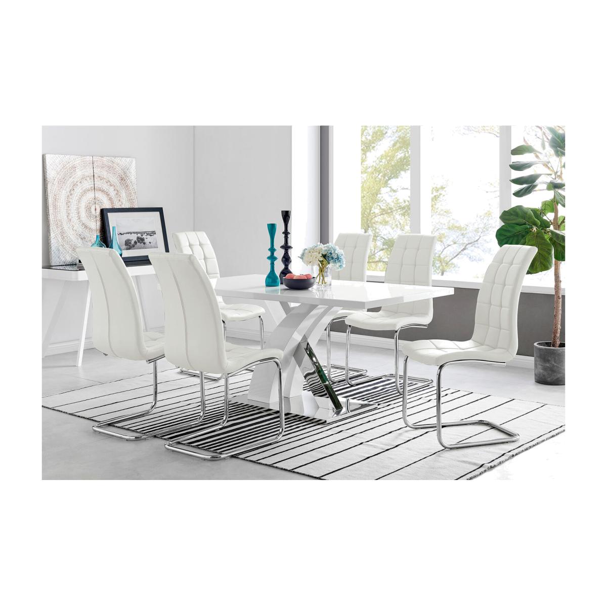 Strikingly elegant, the Atlanta dining table will light up any room! Coupling slick white high gloss and a beautifully crafted chrome metal base and diagonal support, this table really does make a statement. Generously offering a large 160cmx90cm top, made from wood with a smooth high gloss coating, the table allows plenty of room for dining with guests. Easy wipeclean surfaces also allow this table to look brand new for years to come! So why not add a classy and sophisticated touch to your dining room with this stunning Atlanta table, you won't regret it! The smooth contours of the hatched pad and the single seat design combine to create a flowing feel to the Murano chair. It is shaped to offer maximum ergonomic support, whilst the deep foam cushion makes it delight to sit on. Both inviting and sumptuous, the Murano is sure to be a strong contender in your quest for the right dining chair.