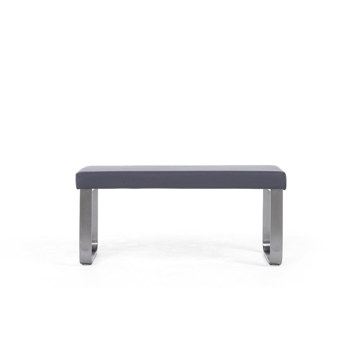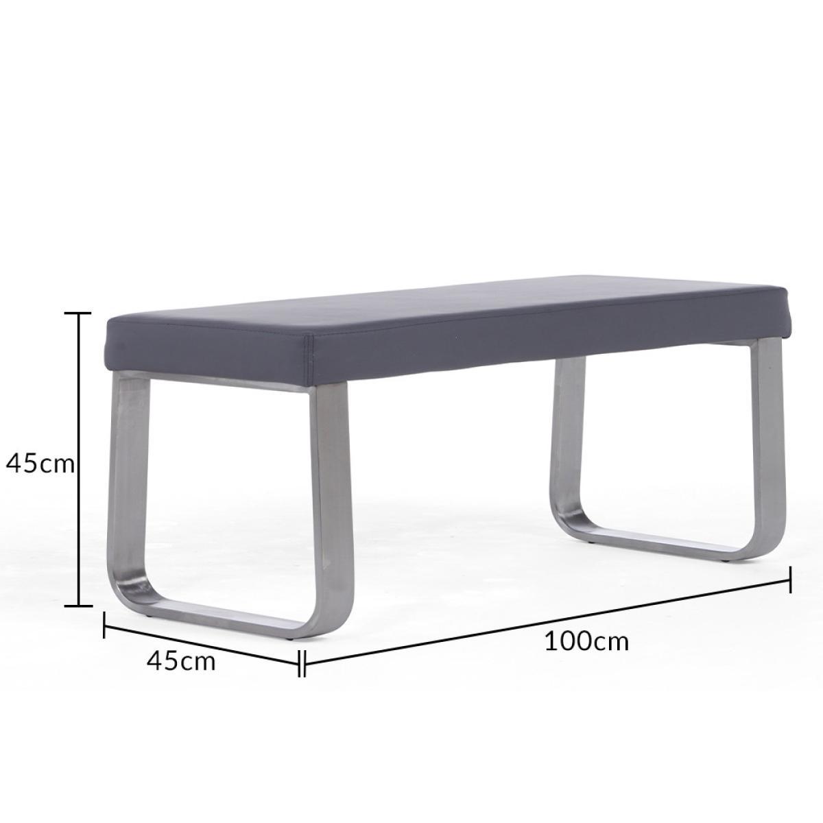 A versatile yet stylish piece of furniture, the Atlanta Small Grey Bench will make a valuable addition to your interior, and will suit being paired with a contemporary or modernly styled table. Able to tuck neatly away under a small table when not in use, it’s able to seat 2 adults. It provides fantastic comfort by way of its generously padded seat and pliable grey faux leather upholstery, while its brushed stainless steel legs in a sled style add a touch of stylish design flair.