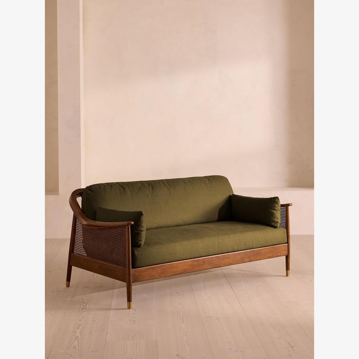 The Atlanta three-seater is a fantastic option for adding colour and comfort to a variety of interiors, especially those with a relaxed or Scandinavian-inspired aesthetic. I love its linen upholstery, which adds a tactile softness, paired with the olive hue that brings a subtle yet rich pop of colour. It works particularly well in neutral-toned spaces, where it can act as a statement piece, and in more eclectic setups that embrace layered textures and accessories. For styling, consider keeping surrounding decor minimal with organic materials, or adding mixed textiles like throws and cushions to create a cozy, inviting look. Practical tips include pairing it with a low coffee table to maintain flow and making sure the sofa's size complements the scale of your room to optimise comfort and functionality.