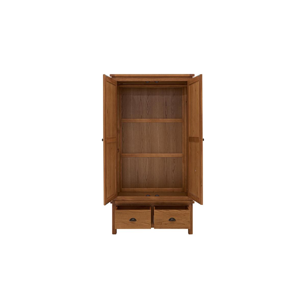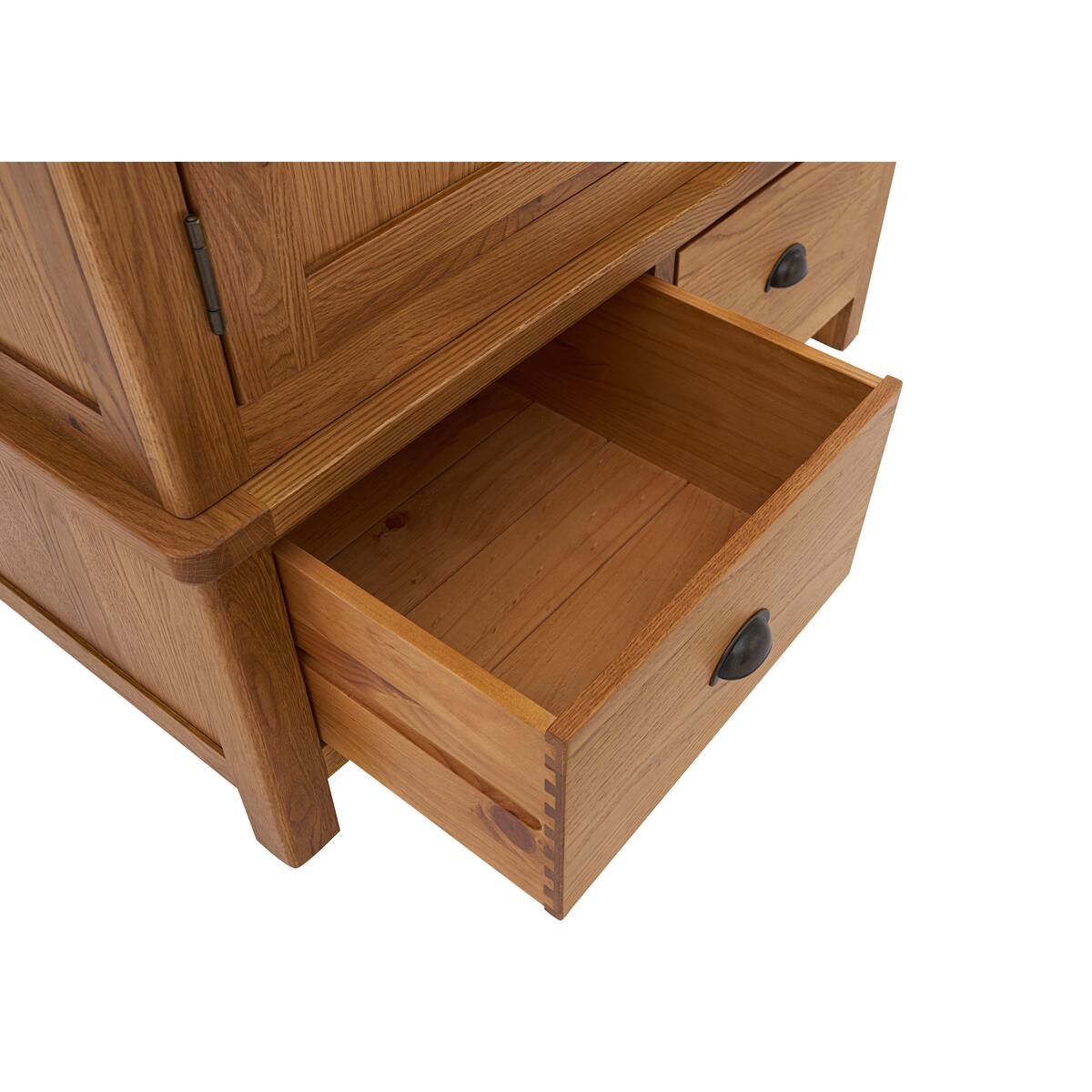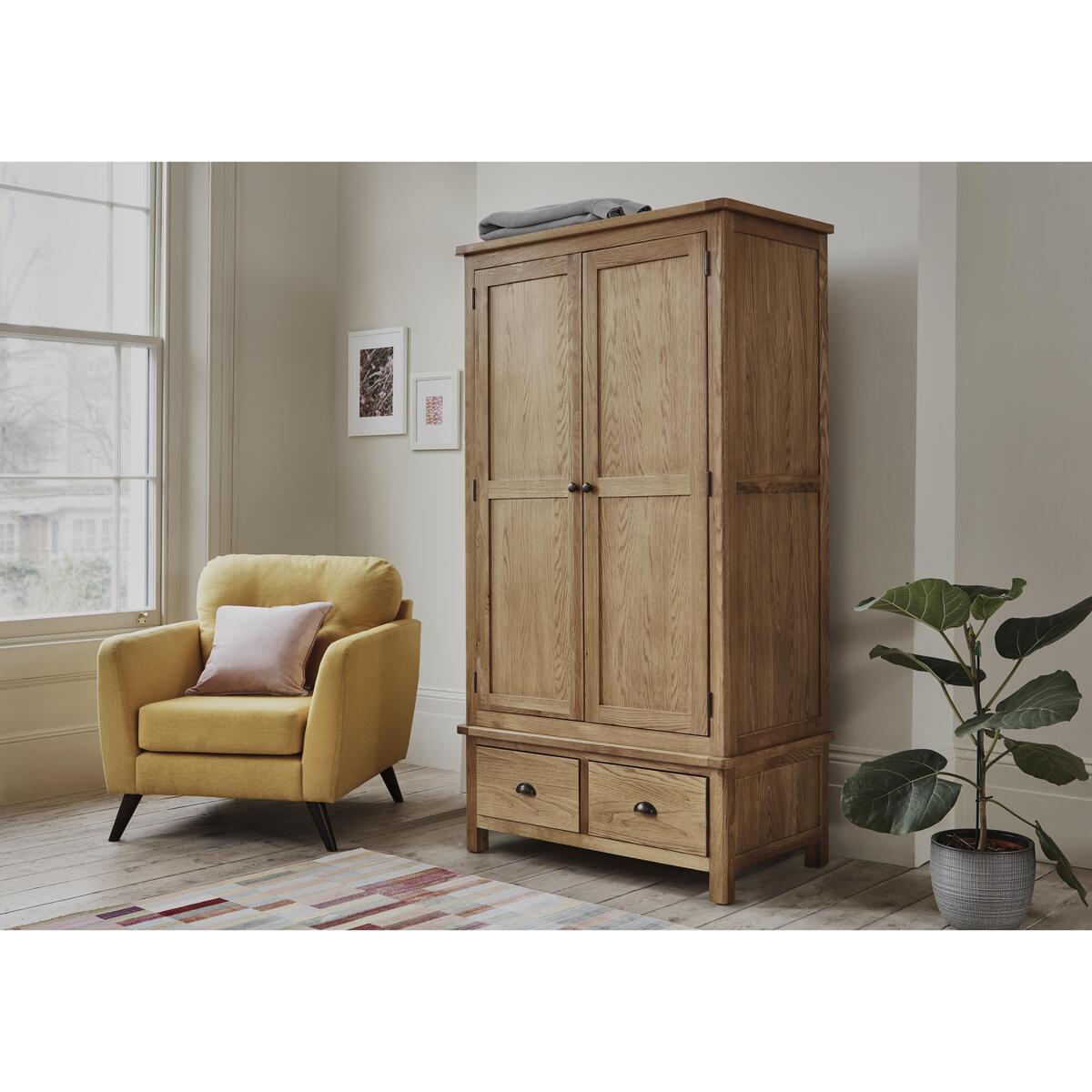 The fantastic-value Atlantic bedroom furniture collection ticks all the boxes. It’s beautifully crafted from solid oak and oak veneer. Pieces have clean lines and slim proportions so they suit smaller as well as larger bedrooms. It’s very functional – you’ll find roomy drawers, spacious hanging spaces and overhanging tops that maximise display space. And the details are lovely, too, from the antique-finish cup handles to the smoothly rounded corners. Timeless in style, this is a fabulous range for all bedrooms and, thanks to the incredible prices, all budgets. High-quality oak bedroom furniture at a fantastic-value price. Huge choice of pieces makes creating the perfect bedroom so easy. A timeless look with spacious storage and lovely finishing touches. Simple, stylish and spacious, the Atlantic 2 door 2 drawer wardrobe offers plenty of versatile storage and yet is still neat enough to fit into most bedrooms. It’s fantastic value too. Beautifully crafted from solid oak and oak veneer, this classic-style wardrobe features understated panelling on its doors and sides, antique-effect metal door pulls and cup-shaped drawer handles, and a slightly overhanging top. Inside, there’s a single hanging rail that offers plenty of room for coats, dresses, trousers and blouses. Two lower drawers are perfect for accessories, shoes and handbags. The Atlantic 2 door 2 drawer wardrobe is part of the extensive Atlantic oak bedroom furniture collection at Furniture Village. The range includes three styles of wardrobe, three bed frames, and multiple chests of drawers. Throughout, lines are clean and unfussy, and the finish warm and inviting. This timeless and versatile oak furniture collection is offered at a great value price. WARNING!. Furniture can tip over unexpectedly and cause injury. This item shall be fixed to a wall using the anti-tip kit provided with the furniture. Be sure to use the correct wall fixings suitable for the walls in your home. Did you know?. Natural wood has unique markings and shows colour variation.