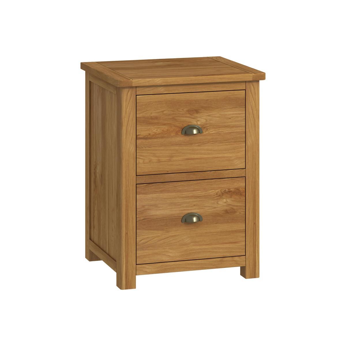 Forget ugly metal filing cabinets, this one is in beautiful oak. Made for a study or home office, but it’s good looking enough to have anywhere you need it. Great quality and value. Why you’ll love it. High quality oak filing cabinet at a great price. Simple design suits all homes. Suits a home office, study or any room. Oak, finished with beautiful oak veneers. Protective lacquer shows off the wood’s natural grain. Two deep drawers with bars for hanging files. Antique finish silvered metal cup handles. Part of the Atlantic range of office furniture. What you need to know. Fully assembled. Oak with natural oak veneers. Li>. Strong and sturdy, built to last. Overhanging top with rounded room facing corners. Contemporary, integral feet. As it is made of real wood, every piece is unique, with its own natural markings, knots and colour variations. Easy to clean. Wipe with a damp, non-abrasive cloth. For more advice on caring for your wooden furniture, see our. Dining Care Guide.