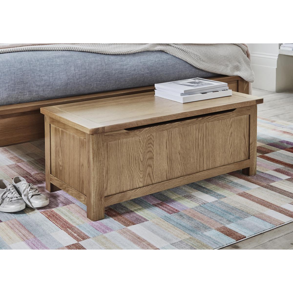 The fantastic-value Atlantic bedroom furniture collection ticks all the boxes. It’s beautifully crafted from solid oak and oak veneer. Pieces have clean lines and slim proportions so they suit smaller as well as larger bedrooms. It’s very functional – you’ll find roomy drawers, spacious hanging spaces and overhanging tops that maximise display space. And the details are lovely, too, from the antique-finish cup handles to the smoothly rounded corners. Timeless in style, this is a fabulous range for all bedrooms and, thanks to the incredible prices, all budgets. High-quality oak bedroom furniture at a fantastic-value price. Huge choice of pieces makes creating the perfect bedroom so easy. A timeless look with spacious storage and lovely finishing touches. Need extra storage in your bedroom? The Atlantic blanket box is the perfect place for blankets, pillows and even winter sweaters – especially if you love the timeless look of oak bedroom furniture. Neatly proportioned and perfect for the smaller bedroom, this roomy blanket box is constructed from solid oak and oak veneer with a beautifully rich and warm tone. Lines are clean and simple, from the square edged legs to the panelled-effect top and sides. The lid is hinged and lifts to reveal a surprisingly large storage area. With its classic oak finish, the Atlantic blanket box is perfect for almost any style of bedroom. It’s part of the Atlantic bedroom furniture collection at Furniture Village. Choose from a wide range of chests of drawers, wardrobes and bed frames or opt for one of our great-value ready-made bedroom sets comprising bed frame and storage furniture. Thoughtfully designed, beautifully crafted and incredible value – that's the Atlantic bedroom furniture collection. Did you know?. Natural wood has unique markings and shows colour variation.