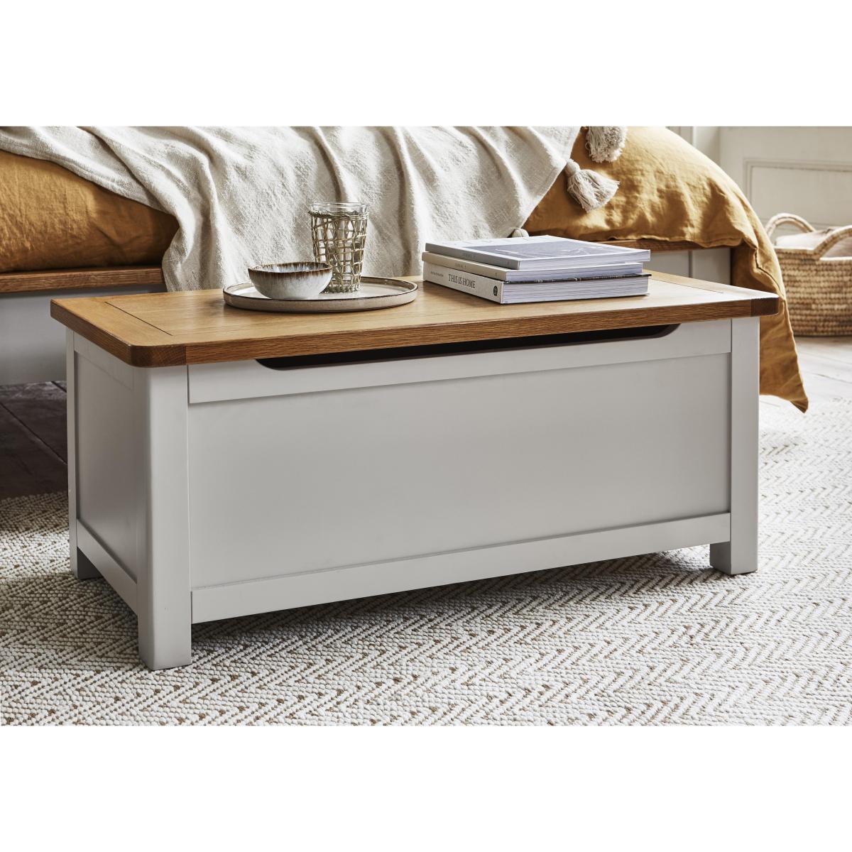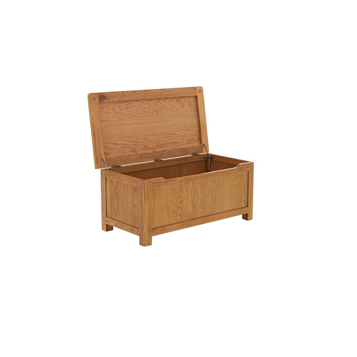 The fantastic-value Atlantic bedroom furniture collection ticks all the boxes. It’s beautifully crafted from solid oak and oak veneer. Pieces have clean lines and slim proportions so they suit smaller as well as larger bedrooms. It’s very functional – you’ll find roomy drawers, spacious hanging spaces and overhanging tops that maximise display space. And the details are lovely, too, from the antique-finish cup handles to the smoothly rounded corners. Timeless in style, this is a fabulous range for all bedrooms and, thanks to the incredible prices, all budgets. High-quality oak bedroom furniture at a fantastic-value price. Huge choice of pieces makes creating the perfect bedroom so easy. A timeless look with spacious storage and lovely finishing touches. Need extra storage in your bedroom? The Atlantic blanket box is the perfect place for blankets, pillows and even winter sweaters – especially if you love the timeless look of oak bedroom furniture. Neatly proportioned and perfect for the smaller bedroom, this roomy blanket box is constructed from solid oak and oak veneer with a beautifully rich and warm tone. Lines are clean and simple, from the square edged legs to the panelled-effect top and sides. The lid is hinged and lifts to reveal a surprisingly large storage area. With its classic oak finish, the Atlantic blanket box is perfect for almost any style of bedroom. It’s part of the Atlantic bedroom furniture collection at Furniture Village. Choose from a wide range of chests of drawers, wardrobes and bed frames or opt for one of our great-value ready-made bedroom sets comprising bed frame and storage furniture. Thoughtfully designed, beautifully crafted and incredible value – that's the Atlantic bedroom furniture collection. Did you know. ? Natural wood has unique markings and shows colour variation.