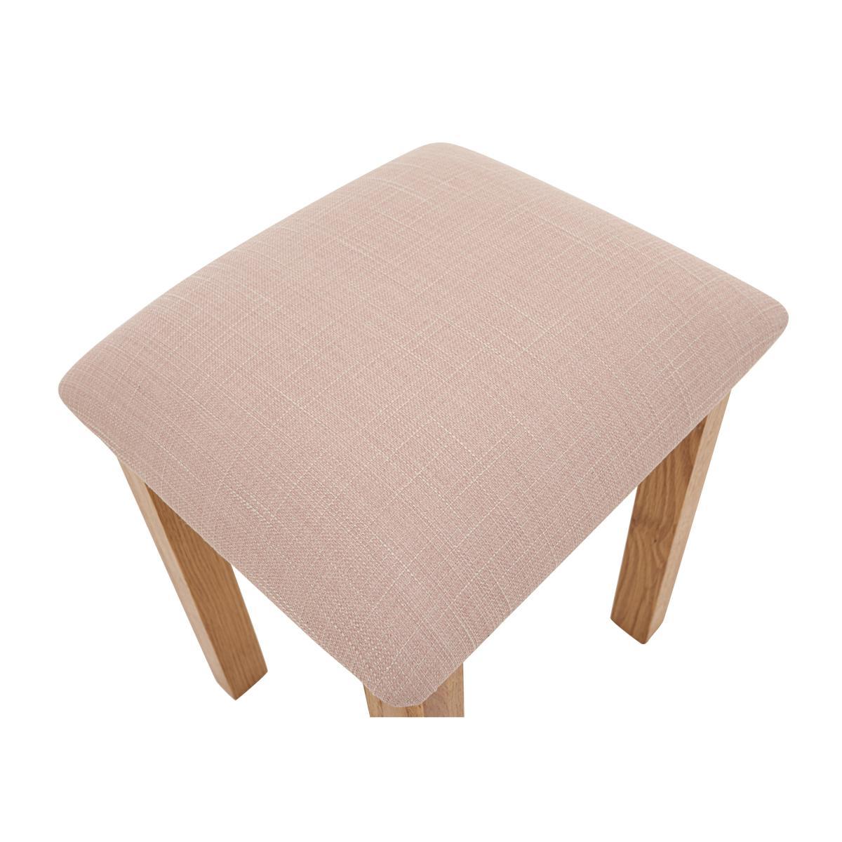 The fantastic-value Atlantic bedroom furniture collection ticks all the boxes. It’s beautifully crafted from solid oak and oak veneer. Pieces have clean lines and slim proportions so they suit smaller as well as larger bedrooms. It’s very functional – you’ll find roomy drawers, spacious hanging spaces and overhanging tops that maximise display space. And the details are lovely, too, from the antique-finish cup handles to the smoothly rounded corners. Timeless in style, this is a fabulous range for all bedrooms and, thanks to the incredible prices, all budgets. High-quality oak bedroom furniture at a fantastic value price. Huge choice of pieces makes creating the perfect bedroom so easy. A timeless look with lovely finishing touches. Less is definitely more with the great-value Atlantic dressing table stool. Designed to pair with the Atlantic dressing table, this simple seat is well crafted from solid oak and oak veneer, and showcases clean lines, square-edged legs and a comfortable padded seat that’s upholstered in a high-quality fabric. Its neat proportions mean that it easily tucks under the Atlantic dressing table when not in use. The Atlantic dressing table stool is part of the Atlantic oak bedroom furniture range at Furniture Village. This extensive collection includes a wide choice of pieces that range from wardrobes and chests of drawers to bed frames and a blanket box. Pieces are designed to fit well into both larger and smaller bedrooms, thanks to their slim lines and unfussy details, making this a particularly versatile collection. Sturdy construction, timeless style and exceptional value. Did you know?. Natural wood has unique markings and shows colour variation.