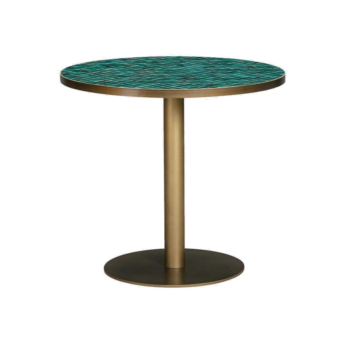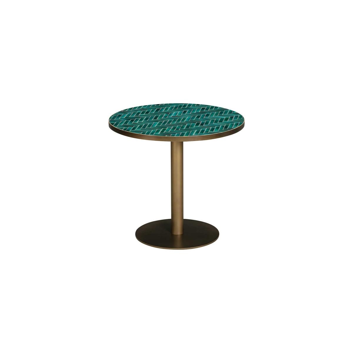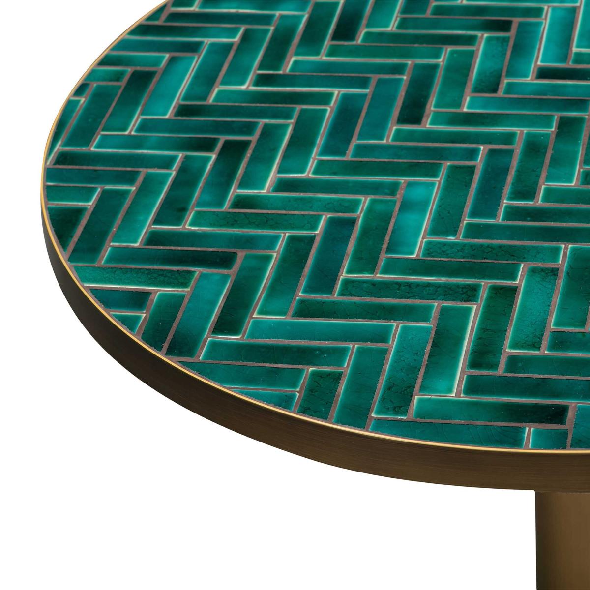 This green herringbone mosaic pedestal bistro table adds a touch of charm and sophistication to your garden. The intricate herringbone pattern in vibrant green tiles creates a stunning focal point, while the pedestal design offers stability and style. Perfect for outdoor dining or as a stylish accent, this bistro table is durable enough to withstand the elements. Ideal for patios, balconies, or garden corners, it brings both functionality and beauty to your outdoor space.