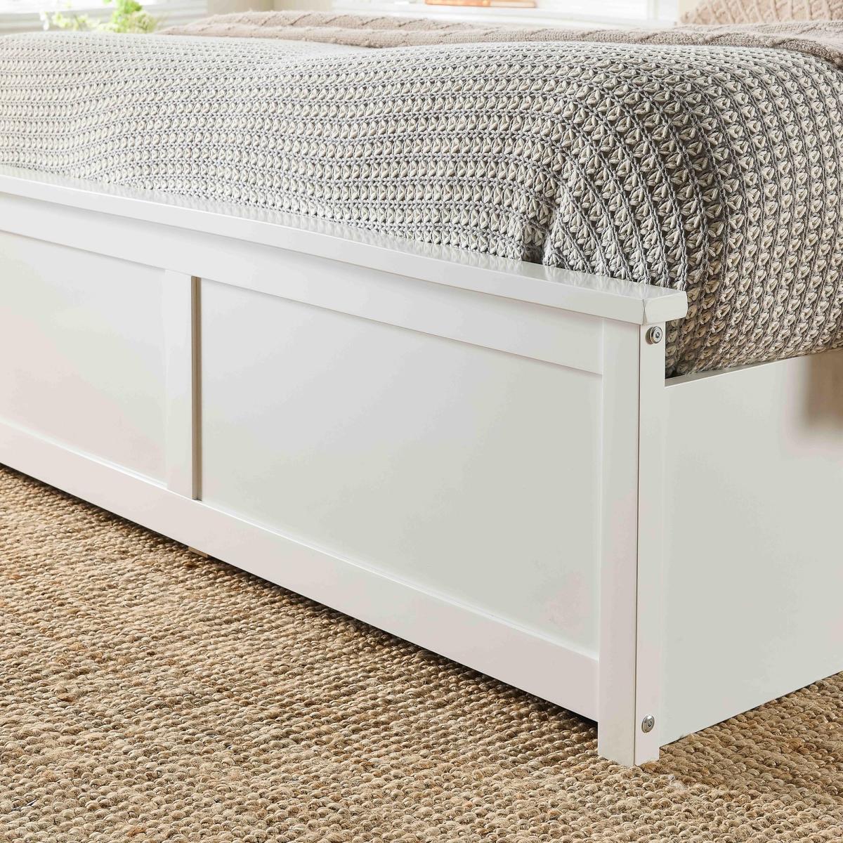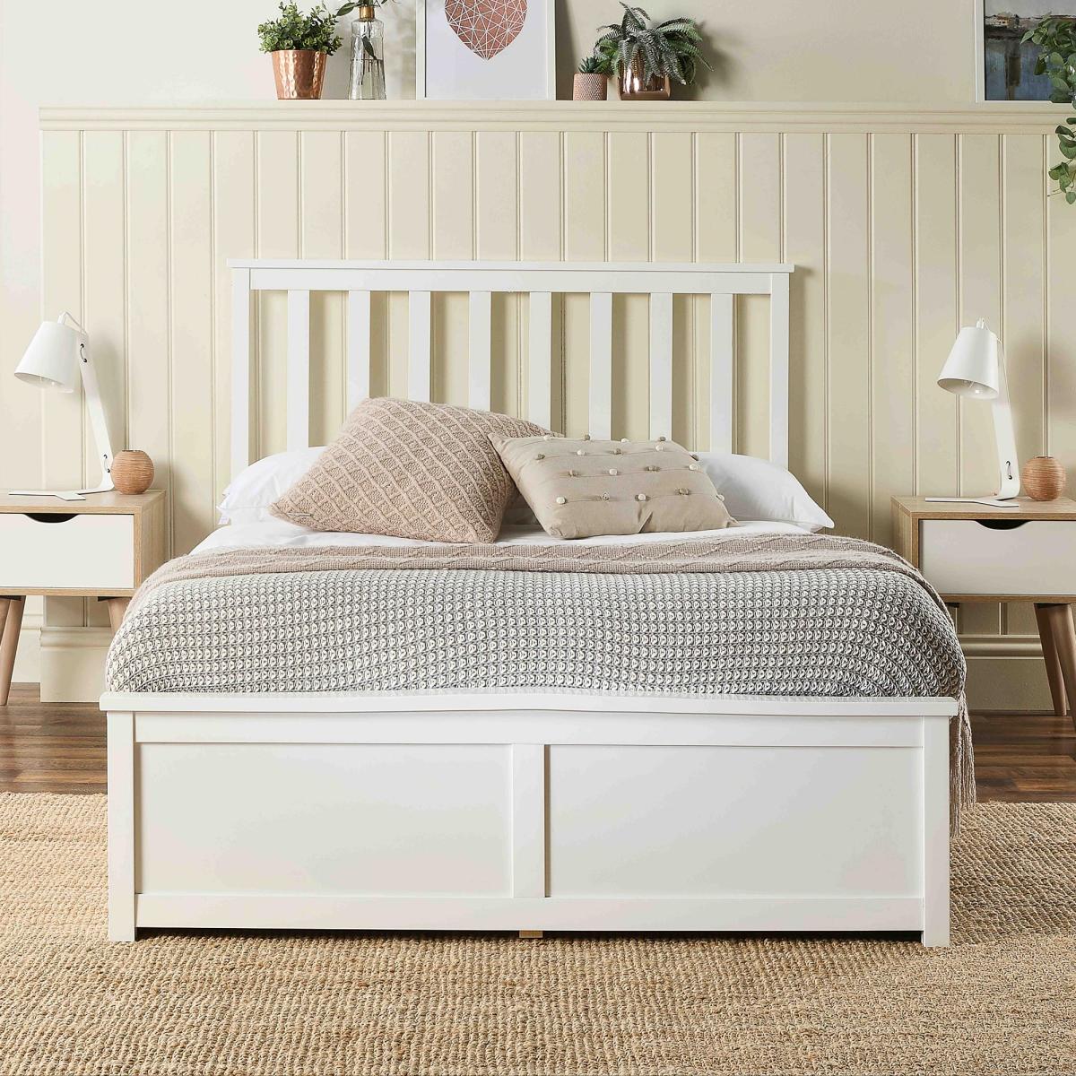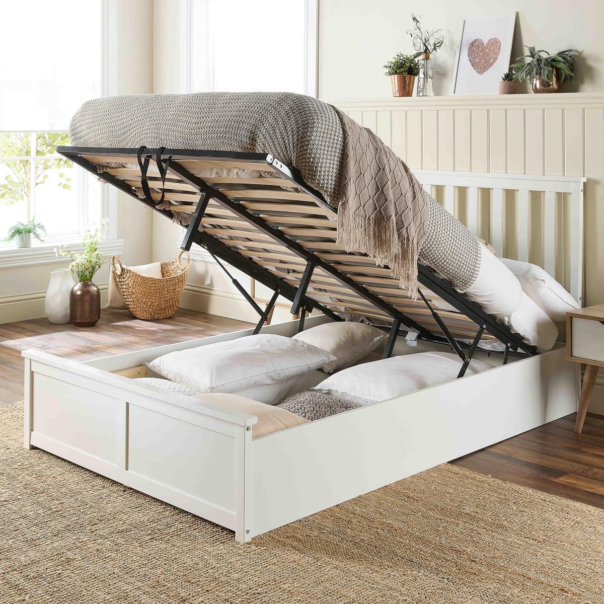 * Wooden frame* Shaker style* Large storage area* Sprung slatted base This ottoman bed is finished in a crisp white paint or a natural look, combining classic shaker design with modern functionality to elevate any bedroom. Its elegant headboard and clean lines bring timeless sophistication, while the ottoman feature offers a clever storage solution—simply lift the mattress for easy access to a spacious compartment perfect for stowing away bedding, pillows, or seasonal items.