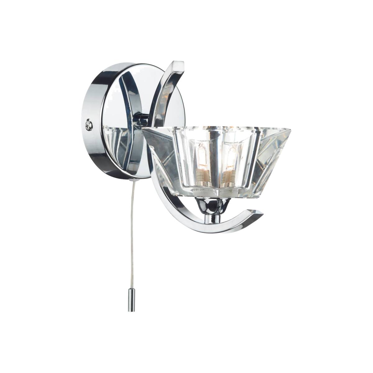 The Atlas Wall Bracket is an exquisite wall light with a modern polished chrome finish. The glamorous design from PAGAZZI Lighting features a beautifully cut clear glass shade which is supported by a polished chrome frame. A pull cord allows for ease of use. The Atlas Wall Light measures 140mm in height by 100mm in width and 185mm in projection. Reqiures a G9 bulb with a maximum wattage of 33w.