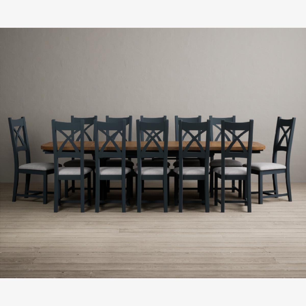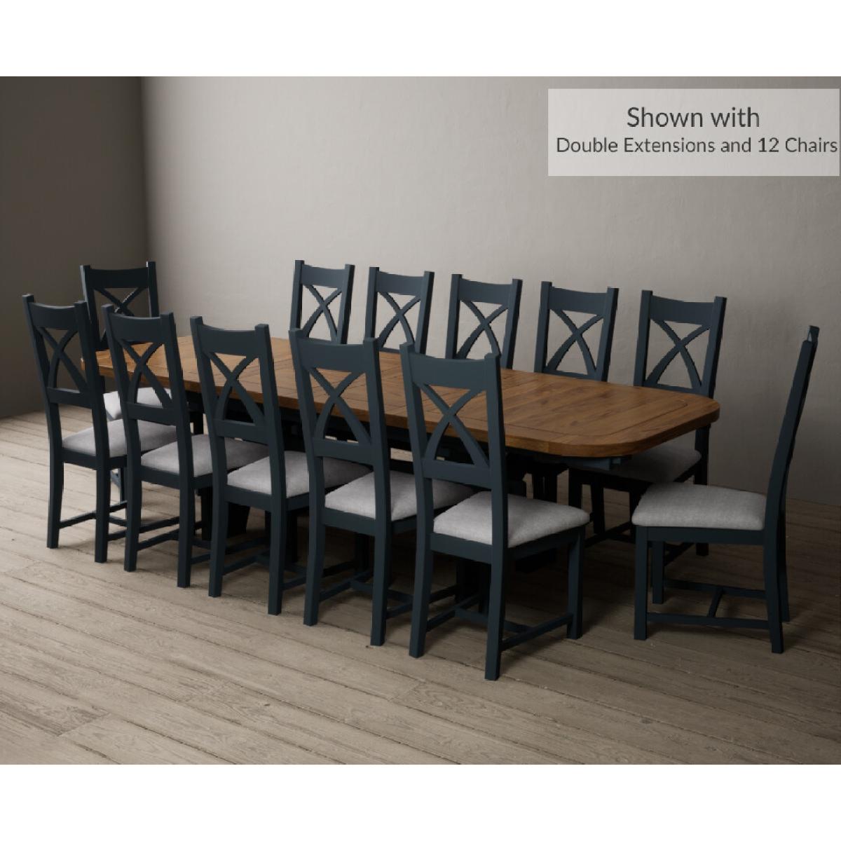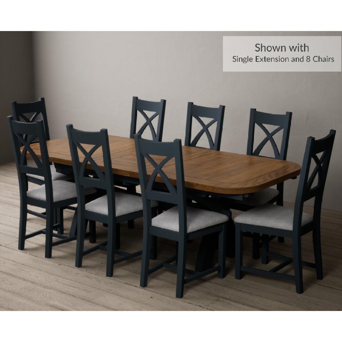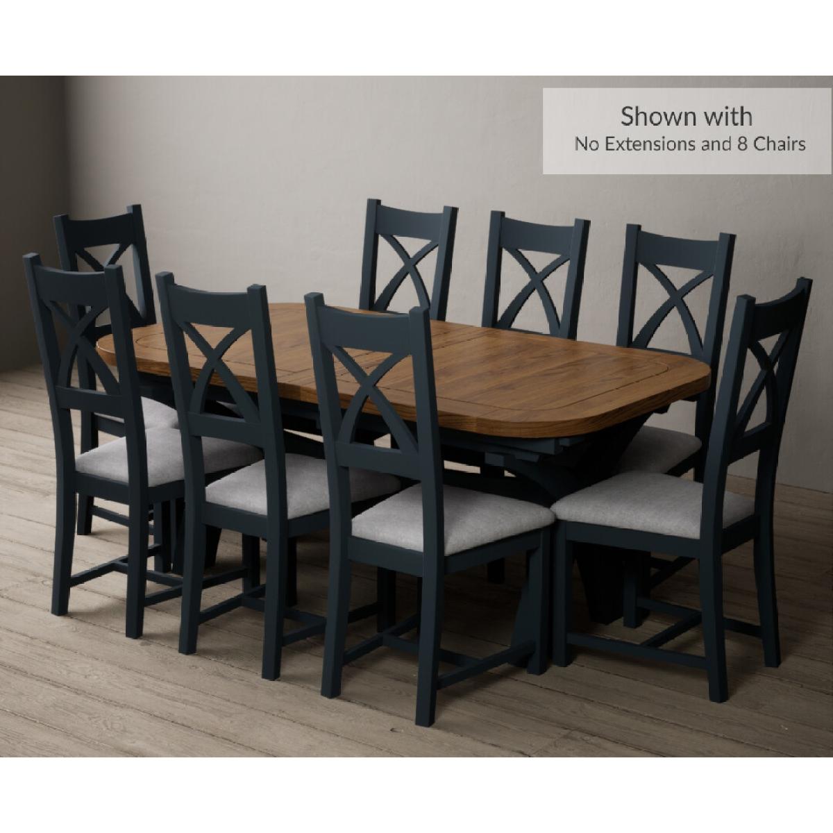 Atlas 180cm Oak and Dark Blue Extending Dining Table With 8 Brown X Back Chairs