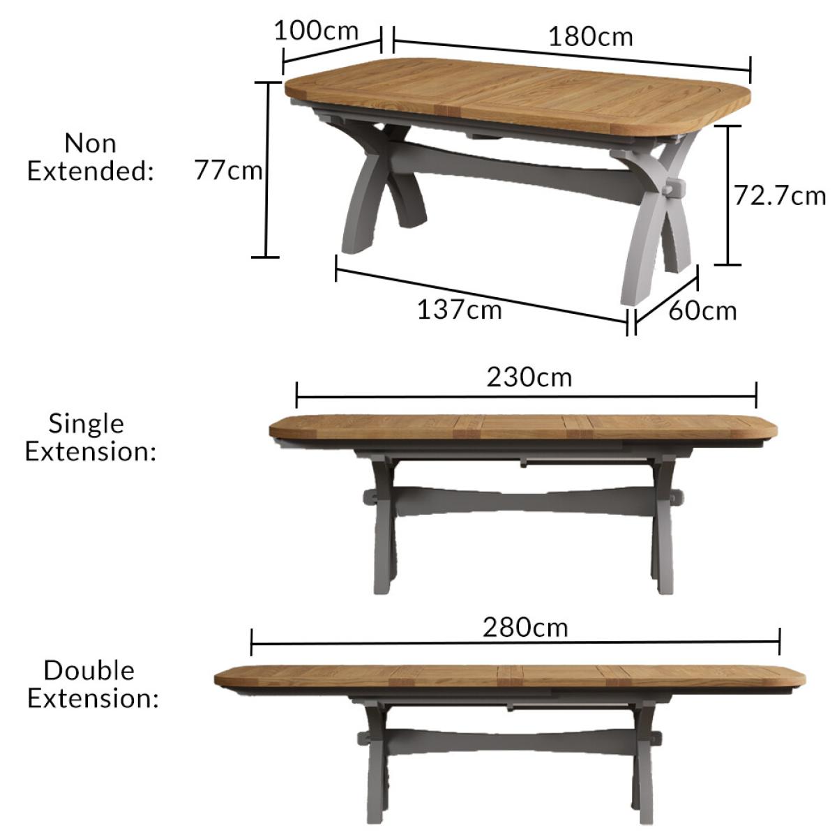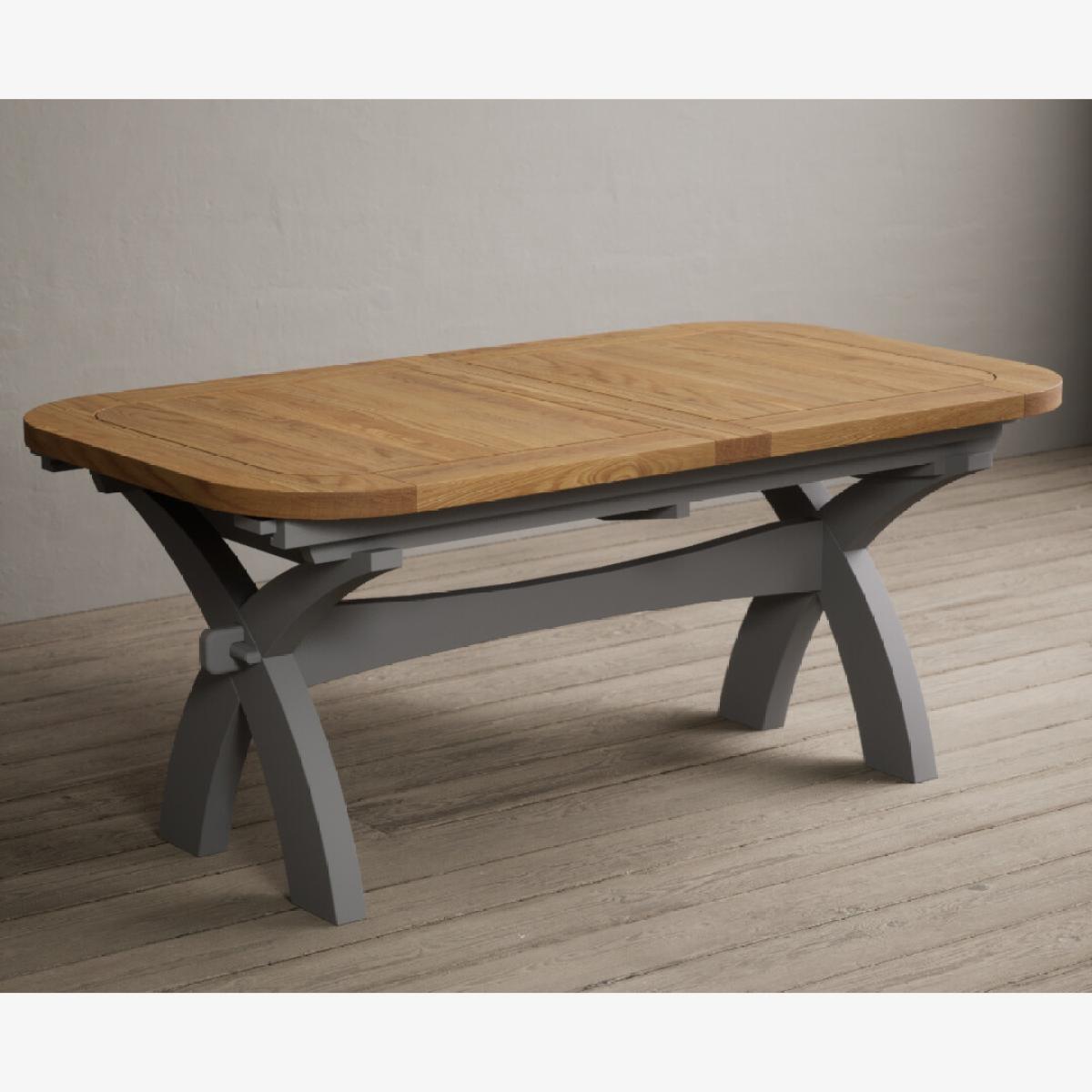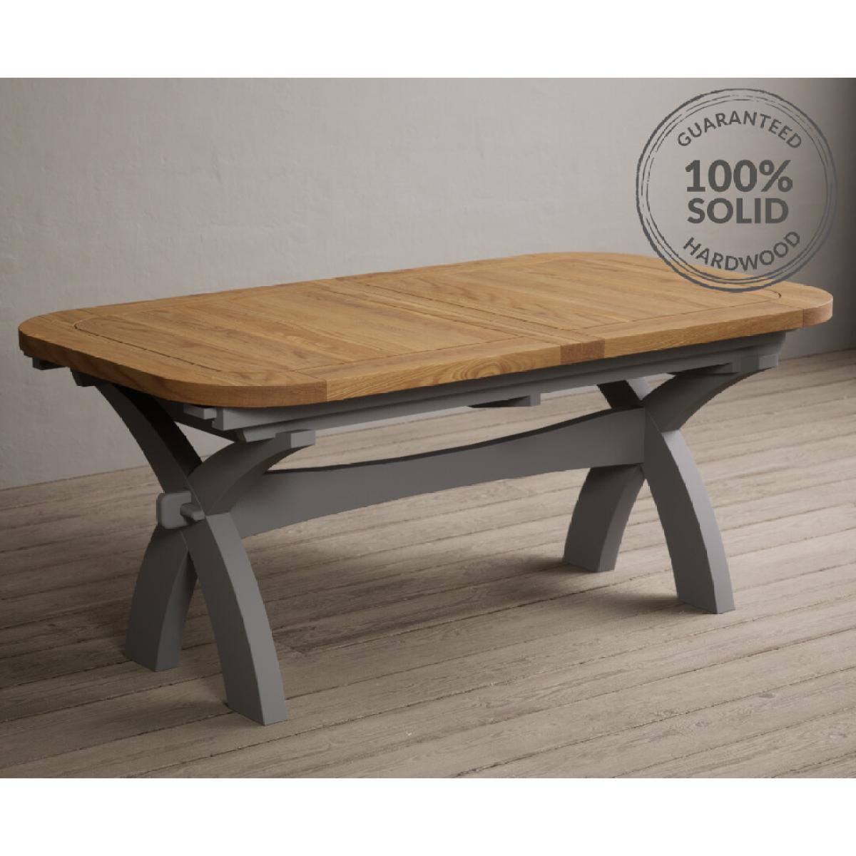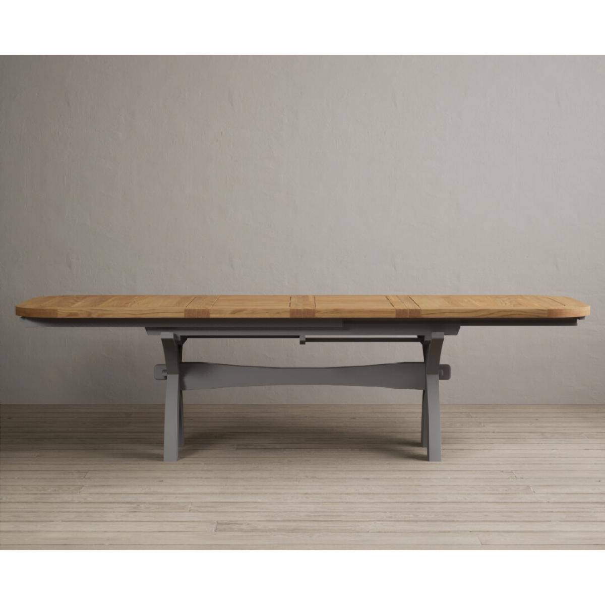 The Atlas 180cm Oak and Light Grey Painted Extending Dining Table is a large grey painted extending table with a solid oak top.