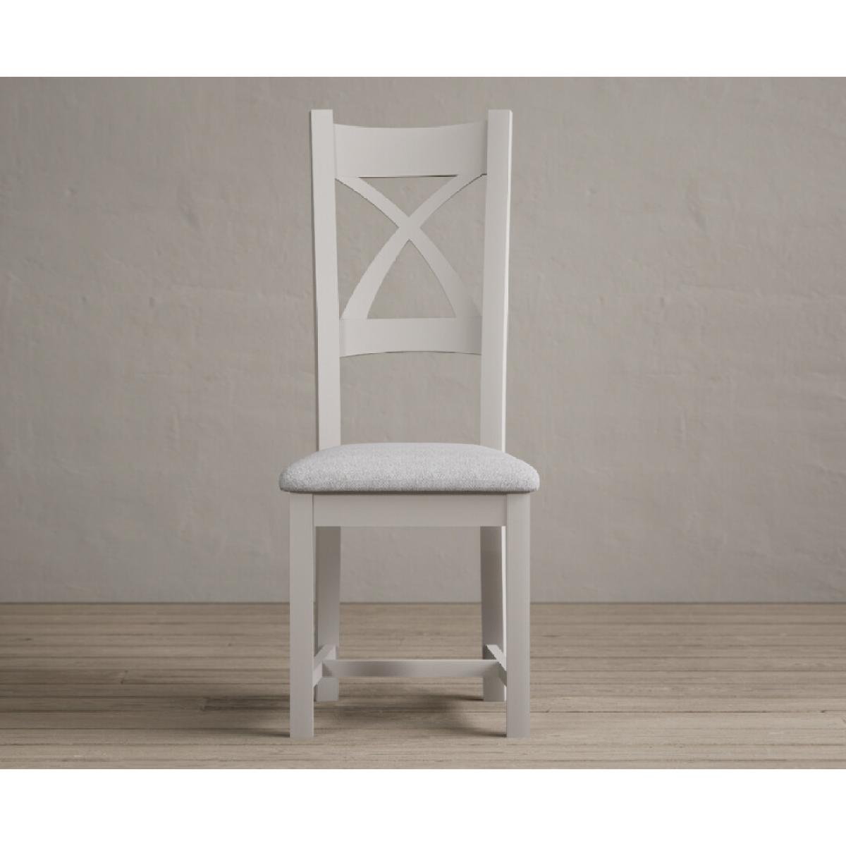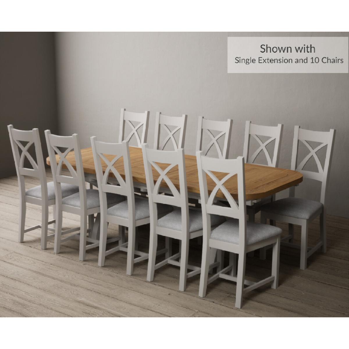 The Atlas 180cm Oak and Soft White Painted Extending Dining Table with X Back Chairs is a painted extending dining set, made with 100% solid wood and 100% solid oak.