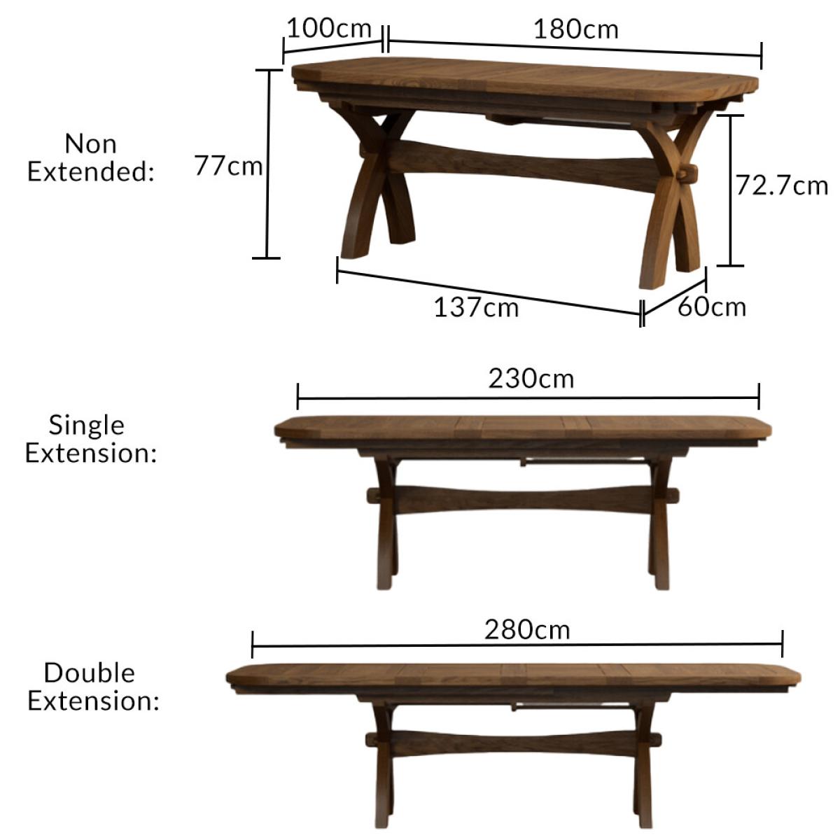 Atlas 180cm Rustic Solid Oak Extending Dining Table
