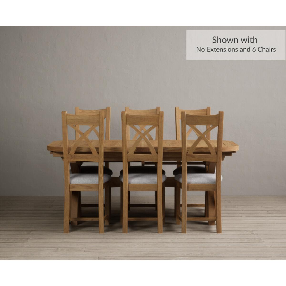 This table is a great choice for a range of interiors, thanks to its versatile natural oak finish and clean, modern design. The 180cm length with extension capability makes it ideal for both everyday family meals and larger gatherings. I love how the solid oak lends durability and a warm, timeless appearance, while the simple, straight lines keep it fresh and adaptable. Paired with the light grey X-back chairs, it creates an understated but sophisticated look that works well in contemporary, Scandi, or rustic schemes. For styling tips, consider adding tactile runners or placemats in muted tones to soften the wood’s natural finish, and complement with decorative accessories like statement pendant lighting or mixed materials to enhance the overall vibe.