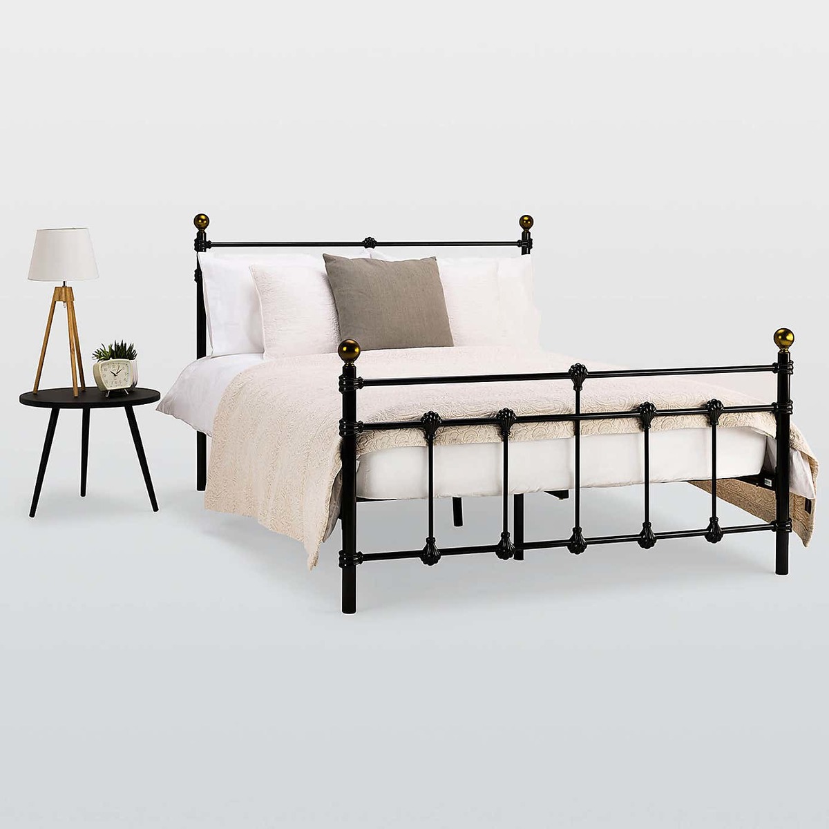 The Atlas Bed Frame has been beautifully crafted from metal for a stunning detailed finish. This traditional-style bed frame is finished in a choice of cream or black, depending on the look you're going for. The antique brass finials add charm and character, whilst the sprung slatted base will give you a restful sleep night after night. Please note, unfortunately we cannot deliver this item to the Channel Islands.