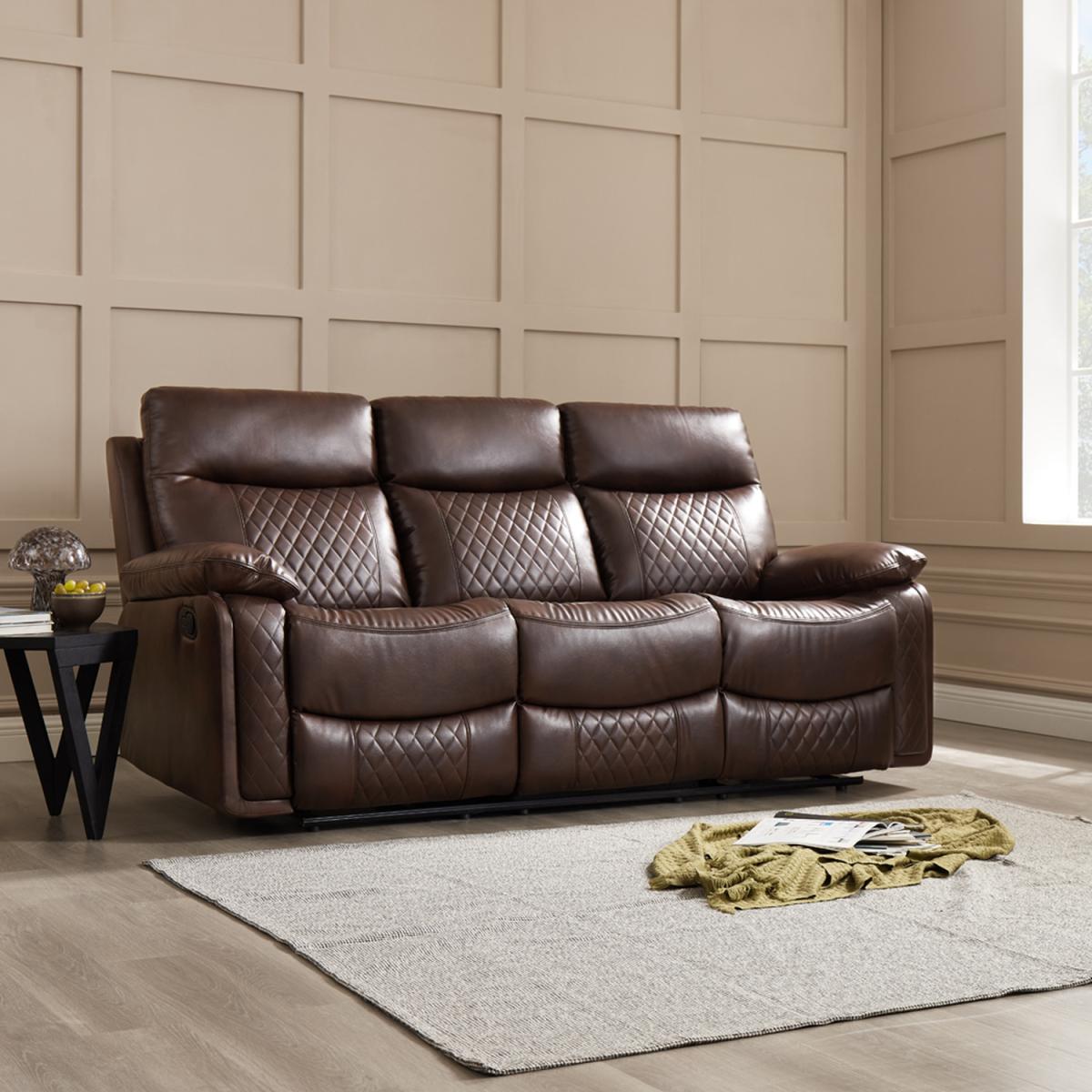 Introducing our Altlas manual recliner sofa range. Atlas is so comfy with its generously padded backrest and armrests, it has a beautiful diamond stitching detail on the lumbar, seat, footrest and front of the armrest. You will love how easy it is to adjust the seat's position with just a simple handle. atlas is available in an armchair, 2 seater and 3 seater options with a colour pallet of brown air leather or black air leather, whichever suits your home decor. Our air leather is a durable fabric with strength and longevity which will mean your sofa bed will last you a very long time. Not to mention super easy to clean. One of the best ways to keep your sofa bed looking great is to vacuum it once a week. Use a low setting and the upholstery attachment of your vacuum cleaner to avoid any damage to the fabric. Just make sure to vacuum in the direction of the pile. Alternatively using a soft hand brush can fluff the fibres back up and keep the fabric colour intact. Air leather should be wiped clean with a damp cloth to remove any stains.