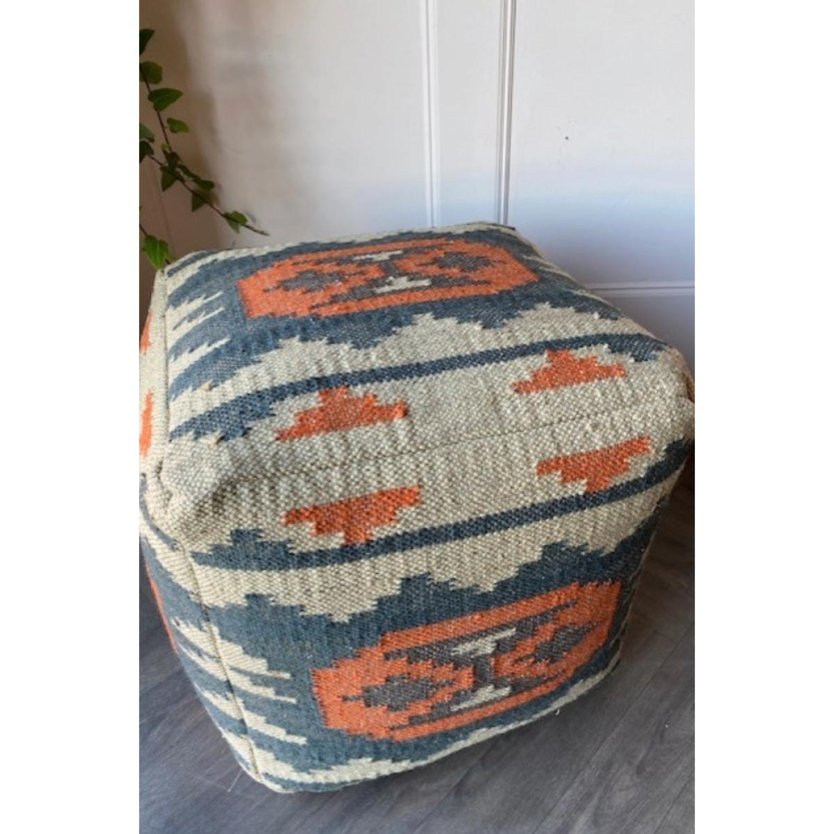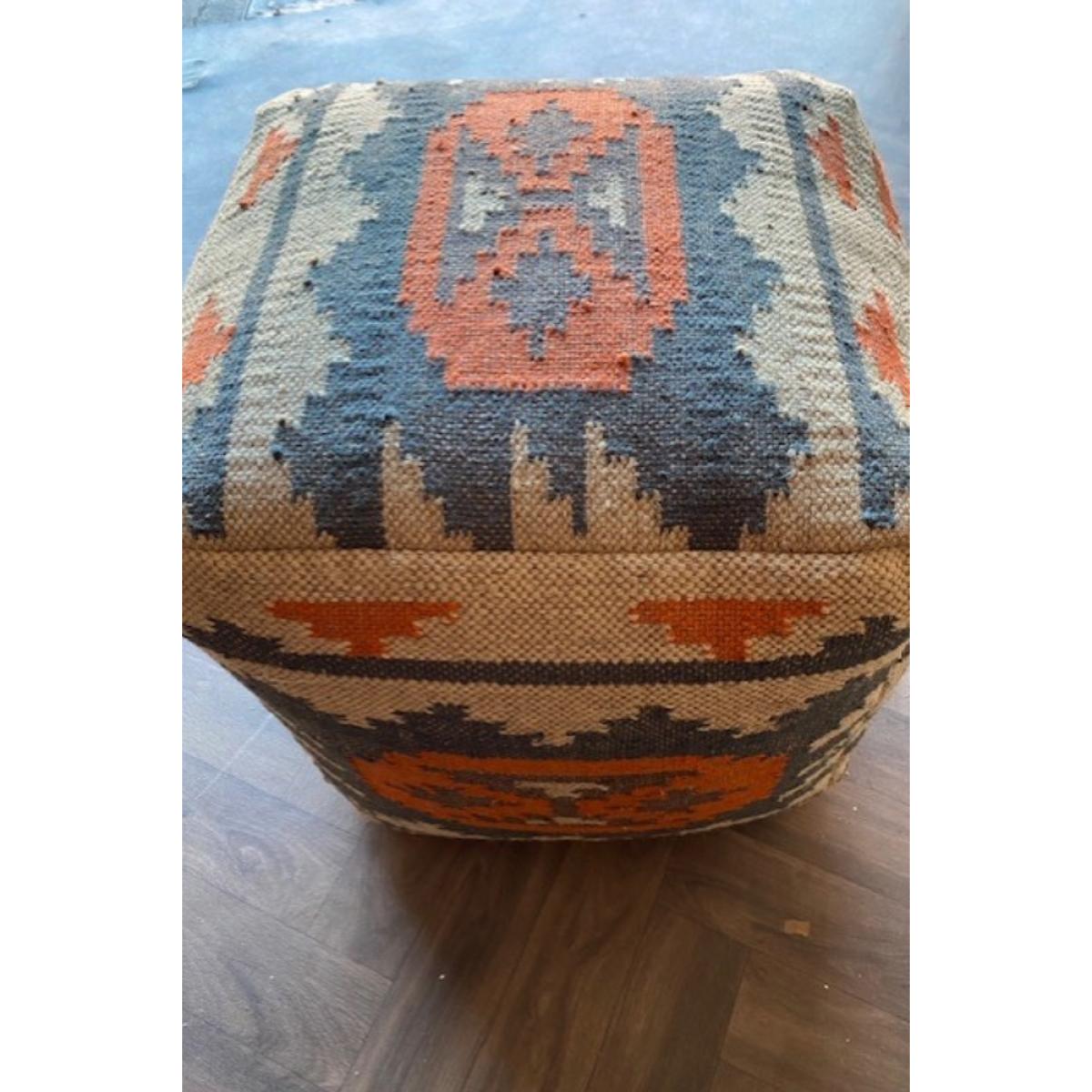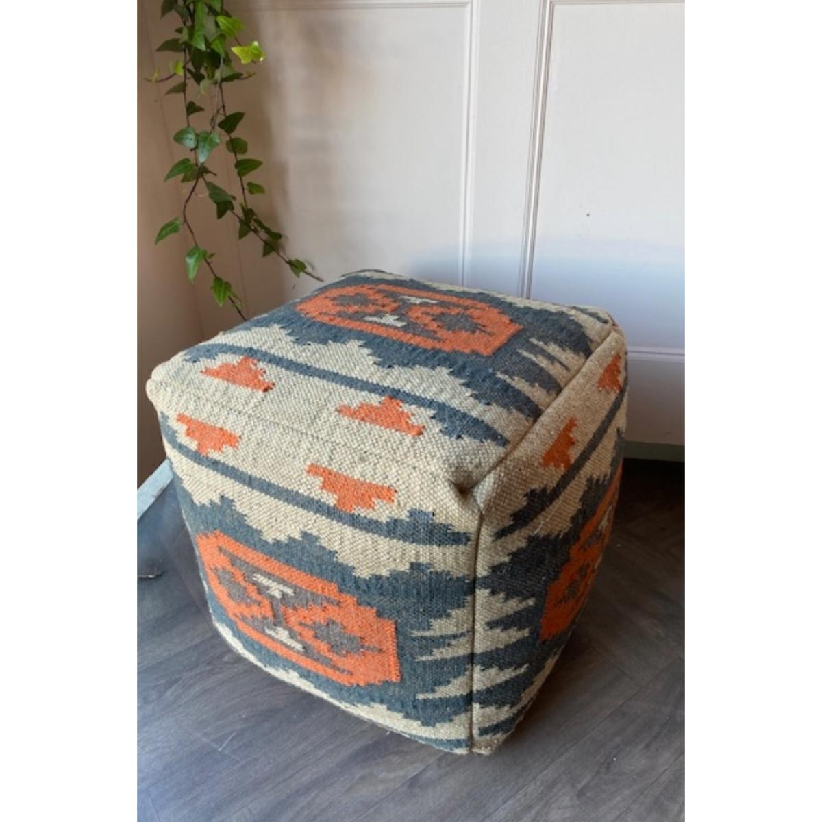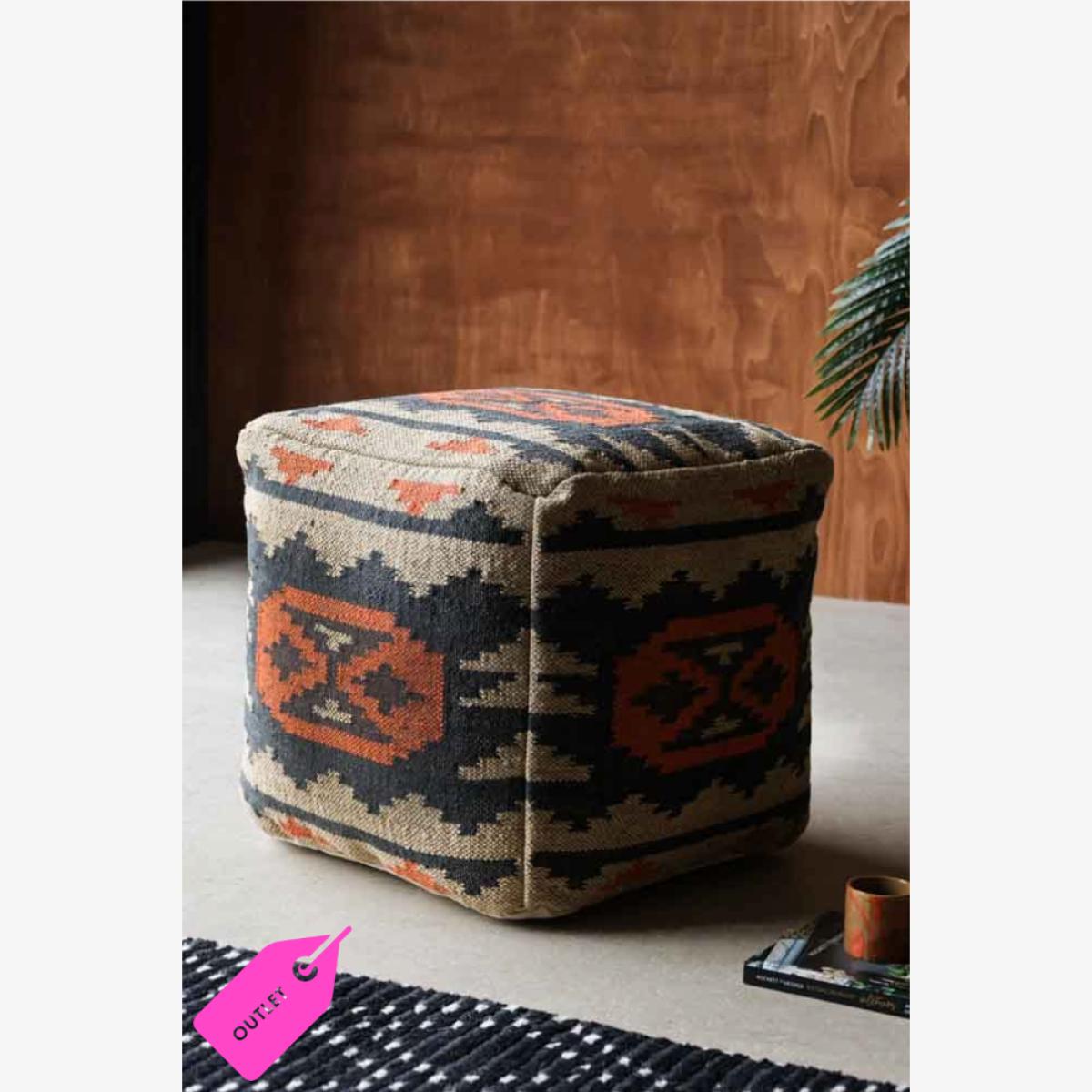 The Atlas Square Kilim Pouffe is a standout accessory that brings extra comfort and effortless style to your living space. This fabulous discontinued piece features a few loose threads in the weave, adding to its character and charm. With a design inspired by bold, travel-inspired textiles, its abstract pattern strikes the ideal balance between contemporary trends and timeless tradition. Whether used as a footstool, additional seating, or a decorative accent, it’s a versatile and hardworking addition to any interior.- Jute footstool printed with an abstract pattern- Measures: H54cm x W54cm x D54cm - Indoor use only - please bring back inside if used as extra seating in the garden on dry summer days