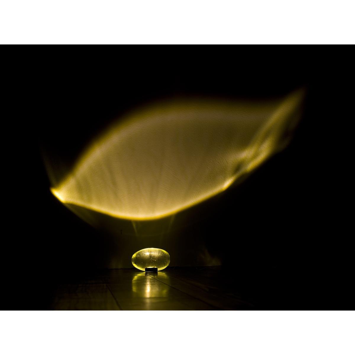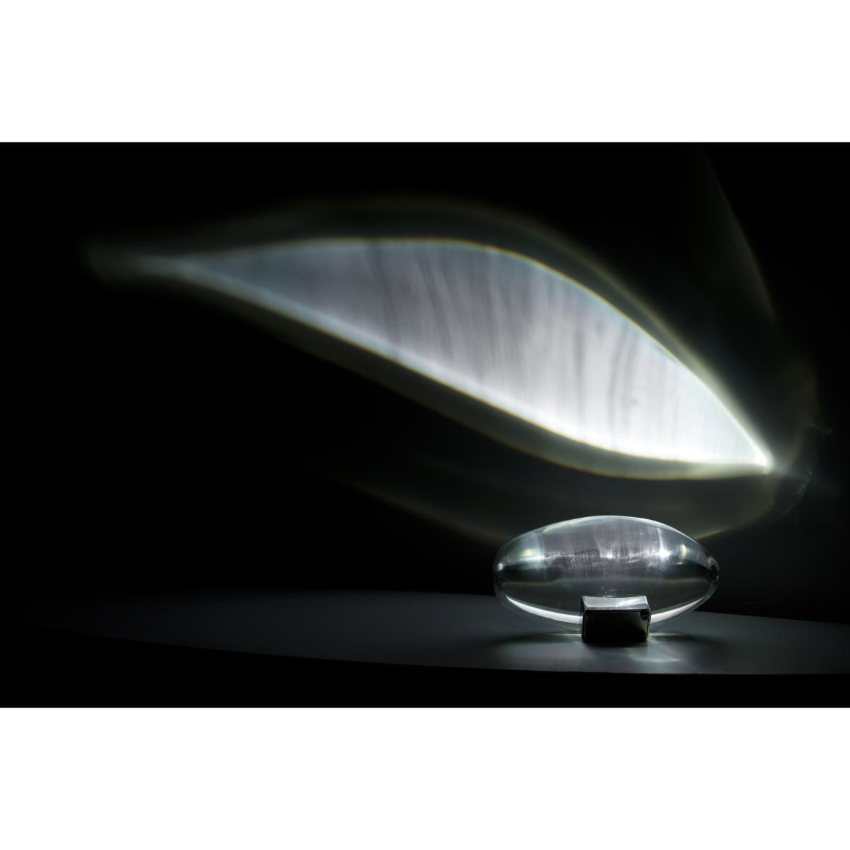 More than a table lamp, Atman is a magic object, which spreads everywhere you put it a soft and warm light, similar to the sun infiltrating through an opened window. Atman is composed of a crystal pebble, behind which was placed a LED bulb, which throws on walls, ceilings and objects natural shadows, looking like leaves. This lamp creates a new quality of light: a relaxing light, inviting in the pondering and reducing the tensions in the enlightened space. To fit the luminosity to your needs, you just have to touch the alimentation cord, equipped with a sensitive dimmer ( 2 positions).
