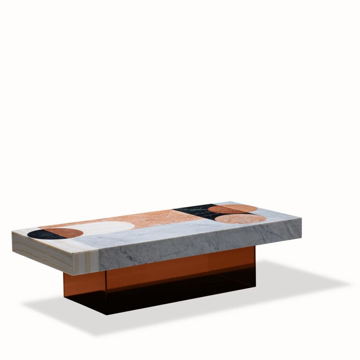 For a taste of 80s Milanese Design in your home, the Atmos Coffee Table is the ideal statement piece. Inspired by its purest form, this exquisite marble coffee table are highlighted in earthy tones that sit on top of a brown acrylic base, creating a perfectly balanced and refined Italian design. Created from marble sourced from around the world in varying sizes and shapes. Each marble coffee table is hand-finished, with every piece of marble unique, in this eco-conscious and ethically sourced design. Each handcrafted piece of marble has naturally occurring texture, pattern, and colour. These variations should be seen as part of the beauty of the design that makes this a truly one-of-a-kind piece.