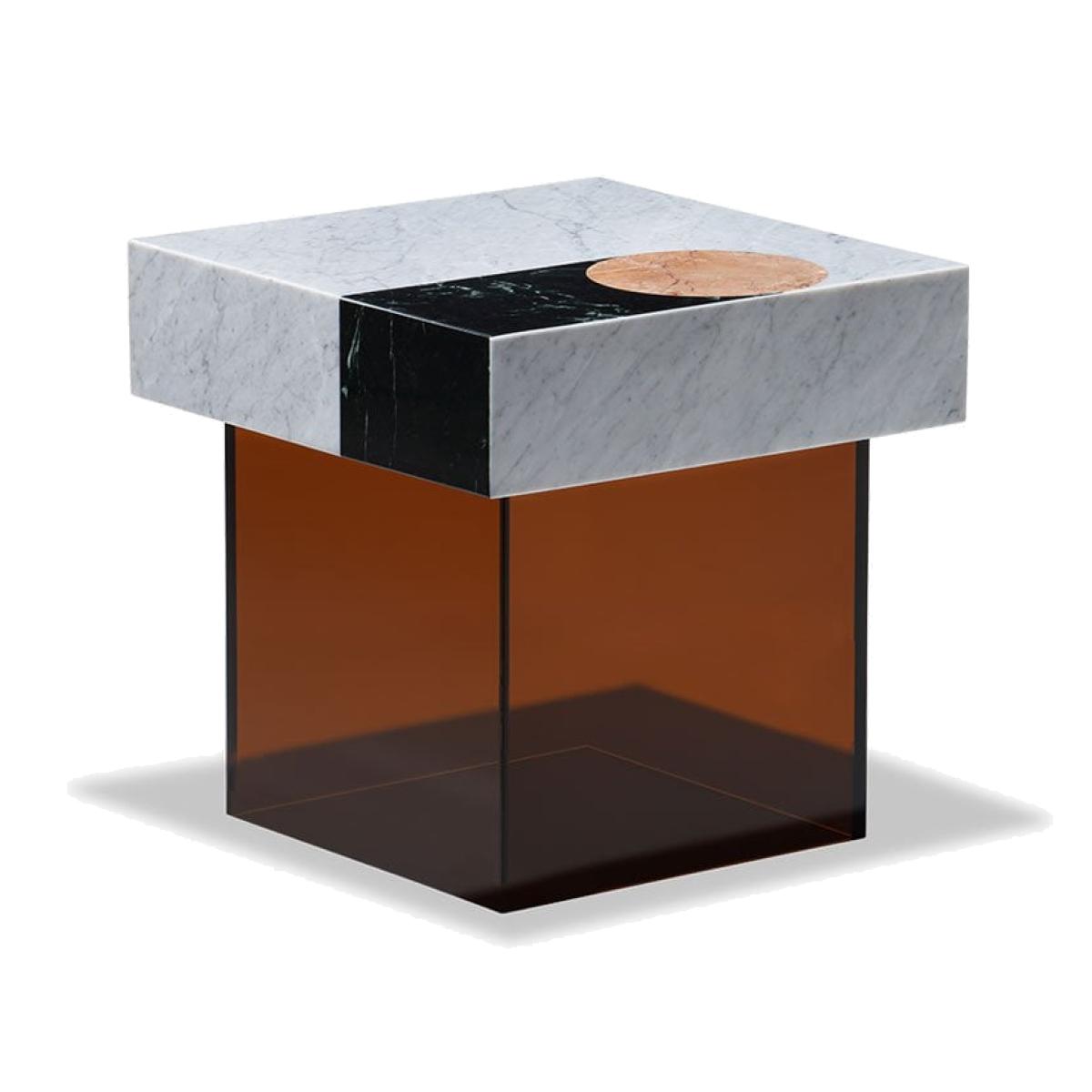 The Atmos Side Table is a statement piece inspired by Milanese Design. Created from marble sourced from around the world in varying sizes and shapes, this exquisite marble side table highlights the natural earthy tones. With a brown acrylic base to create a perfectly balanced and refined piece of Italian design. Each marble side table is hand-finished, with every piece of marble unique, in this eco-conscious and ethically sourced design. Each handcrafted piece of marble has naturally occurring texture, pattern, and colour. These variations should be seen as part of the beauty of the design that makes this a truly one-of-a-kind piece.