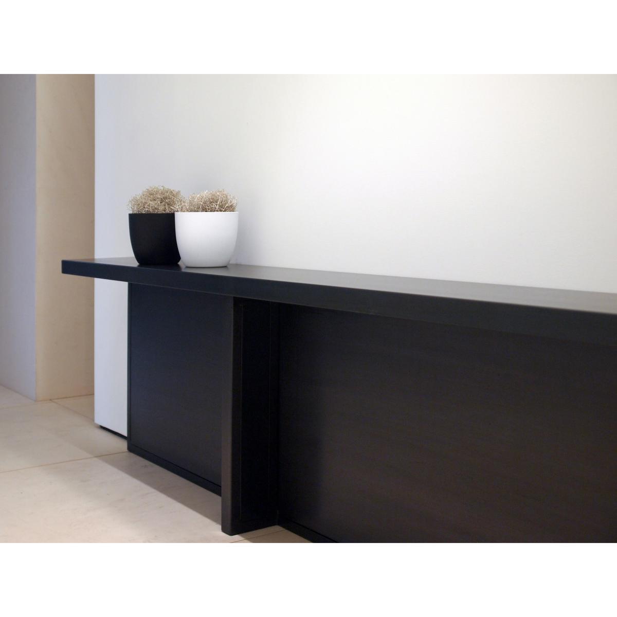 I love the sleek simplicity of this console, making it a versatile addition to a variety of interiors. The black finish adds a modern edge, while its clean lines work well in contemporary spaces, hallways, or even as a statement piece in a living room. A practical styling tip is to keep tabletop accessories minimal, perhaps with a statement lamp or a few decorative objects to avoid visual clutter. It also works beautifully with open storage baskets or woven trays underneath for additional organisation. This piece is great for creating a streamlined look, whether combined with modern furniture or used to add contrast in a more eclectic scheme.