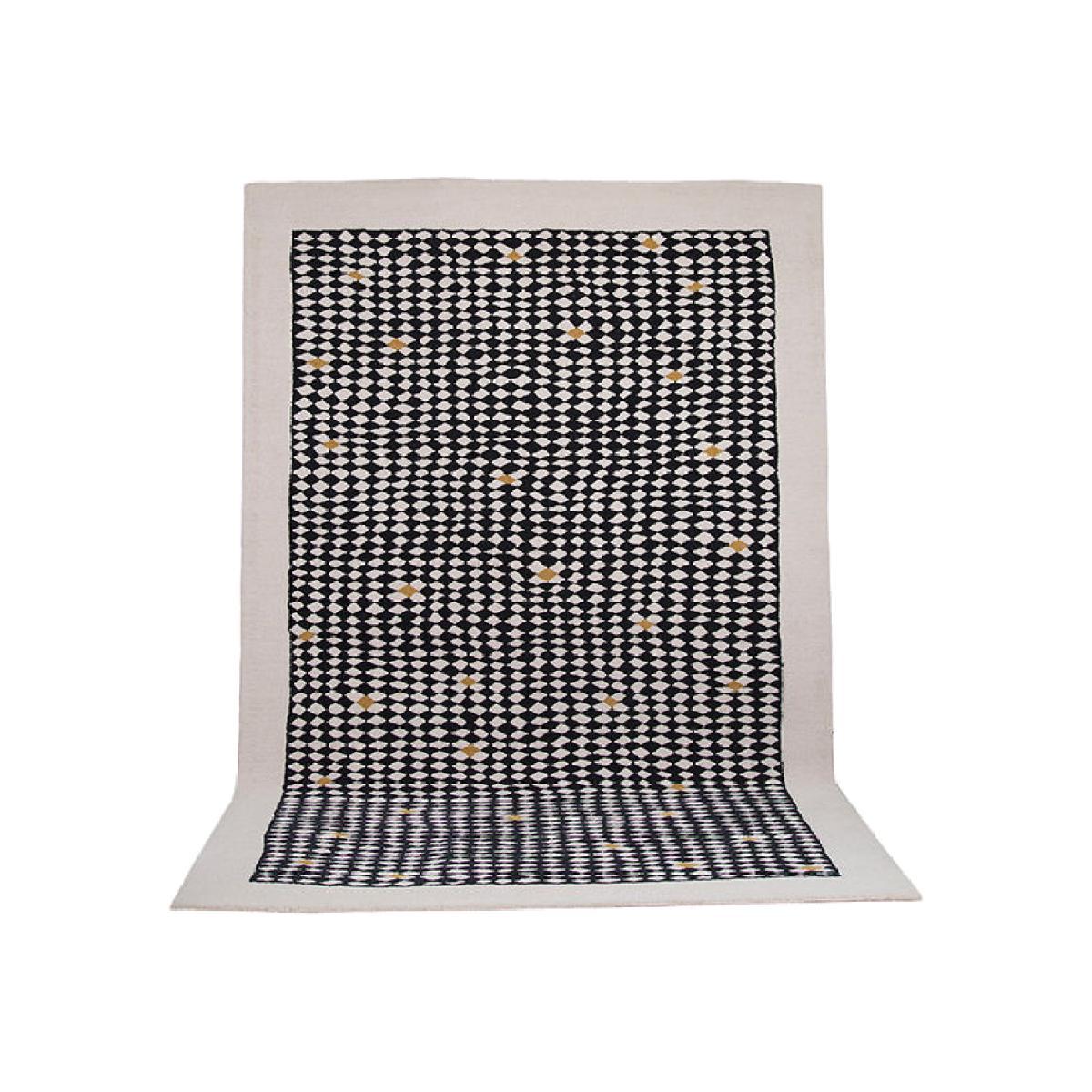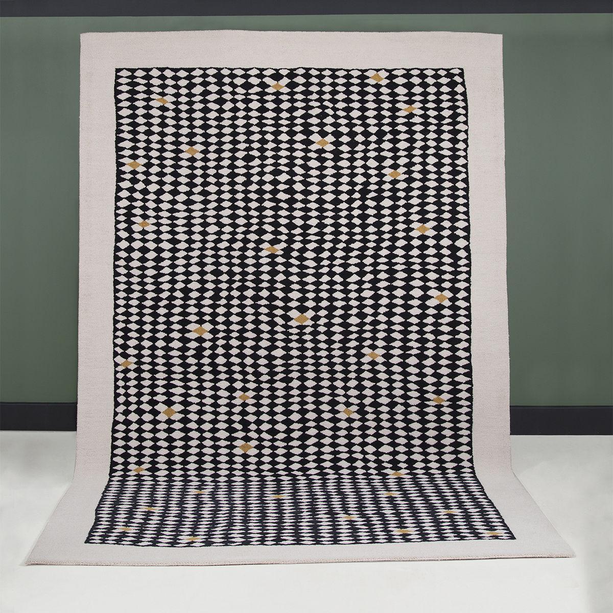 Steeped in a multitude of cultural influences, the Atrium rug combines ethnic style, composition of repeating geometric patterns and contemporary design. Hand-tufted in India, this rug is decorated with patterns that evoke traditional Moroccan mosaics. Repeated geometric patterns play the black & white card. This composition is relieved by subtle touches of ochre. The Atrium rug brings elegance and originality into your room. Mixing false tradition and true modernity, designer Sarah Lavoine interprets all the fantasy and richness of traditional oriental motifs.