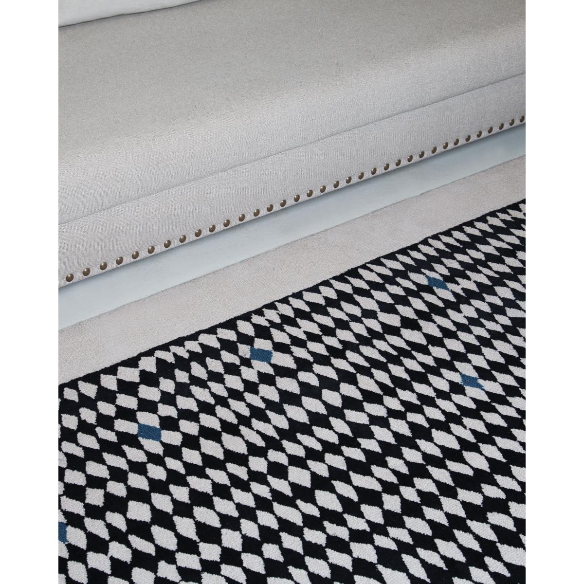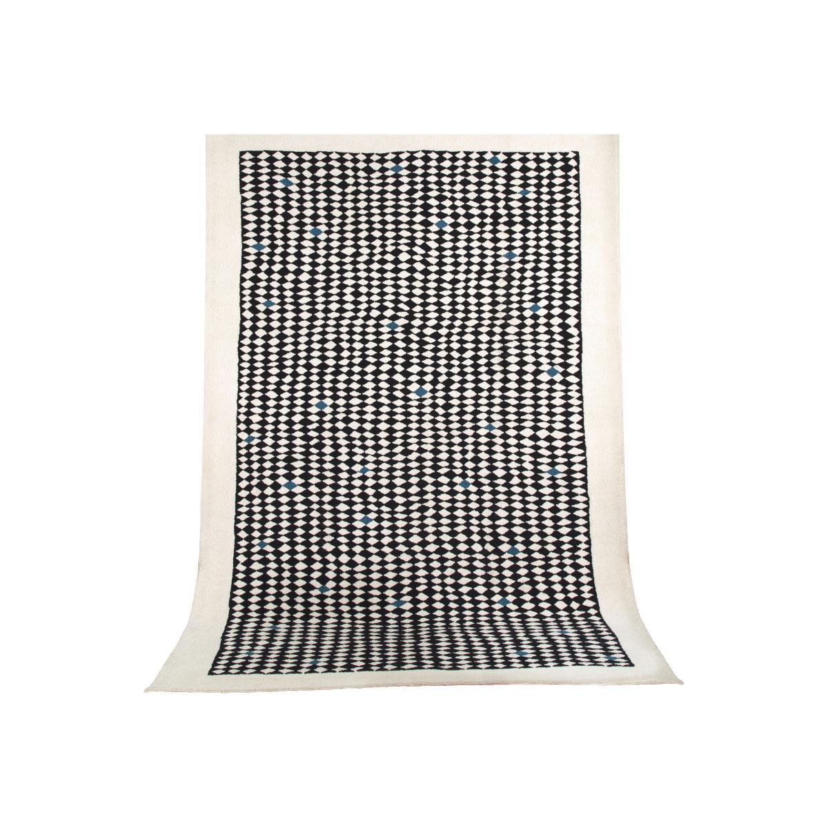 Steeped in a multitude of cultural influences, the Atrium rug combines ethnic style, composition of repeating geometric patterns and contemporary design. Hand-tufted in India, this rug is decorated with patterns that evoke traditional Moroccan mosaics. Repeated geometric patterns play the black & white card. This composition is relieved by subtle touches of blue. The Atrium rug brings elegance and originality into your room. Mixing false tradition and true modernity, designer Sarah Lavoine interprets all the fantasy and richness of traditional oriental motifs.