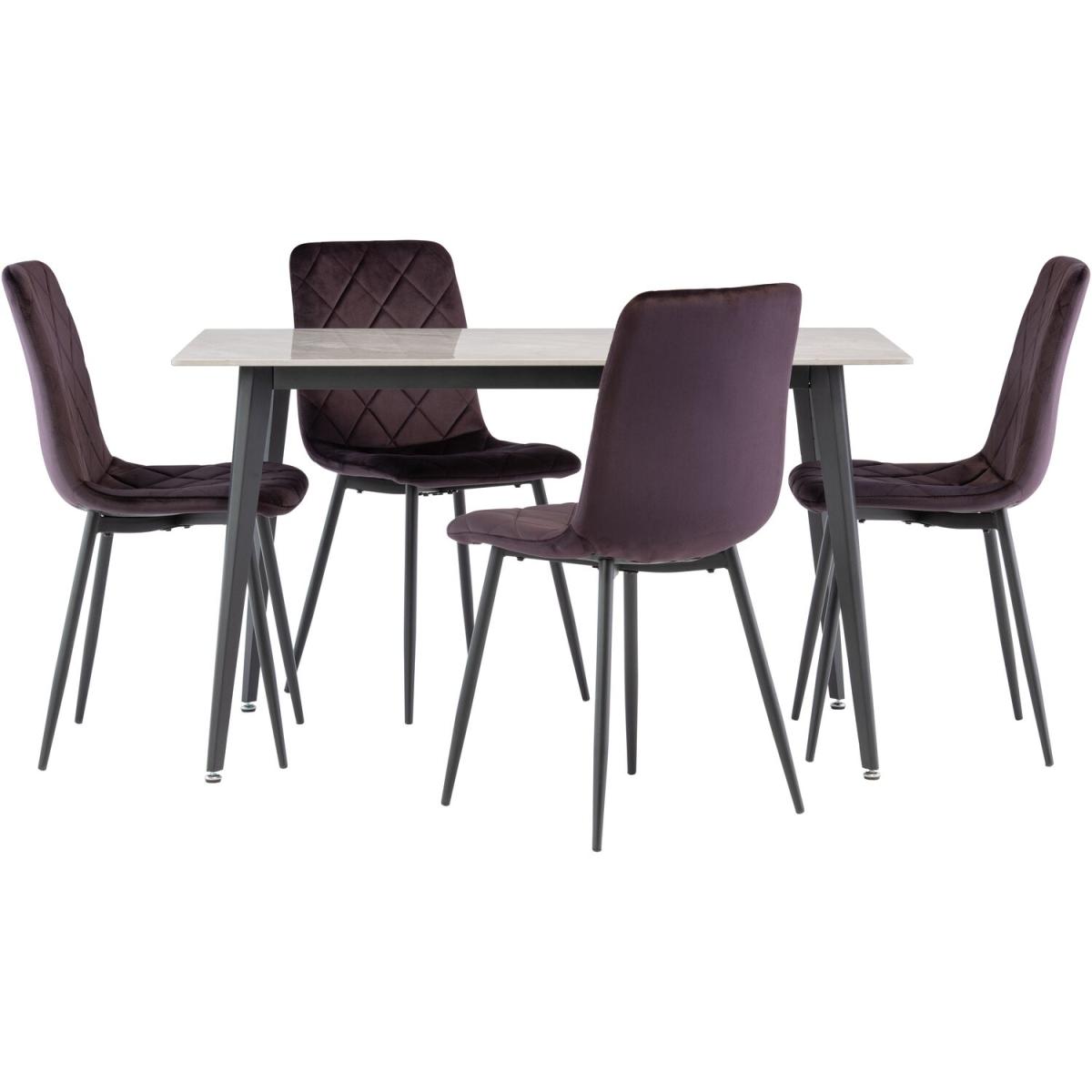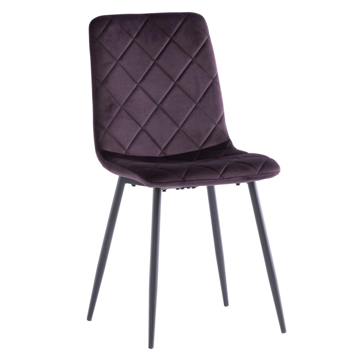 I love how the rich purple velvet seat brings depth and texture to a room without feeling overbearing. Its slim, dark metal legs and diamond-stitched back work equally well in modern, industrial or mid-century settings. For a simple scheme, pair it with a light oak or marble-top table and brass pendant lights; in an eclectic space try mixing in soft grey or muted mustard chairs and layer a neutral rug underneath to define the dining area.